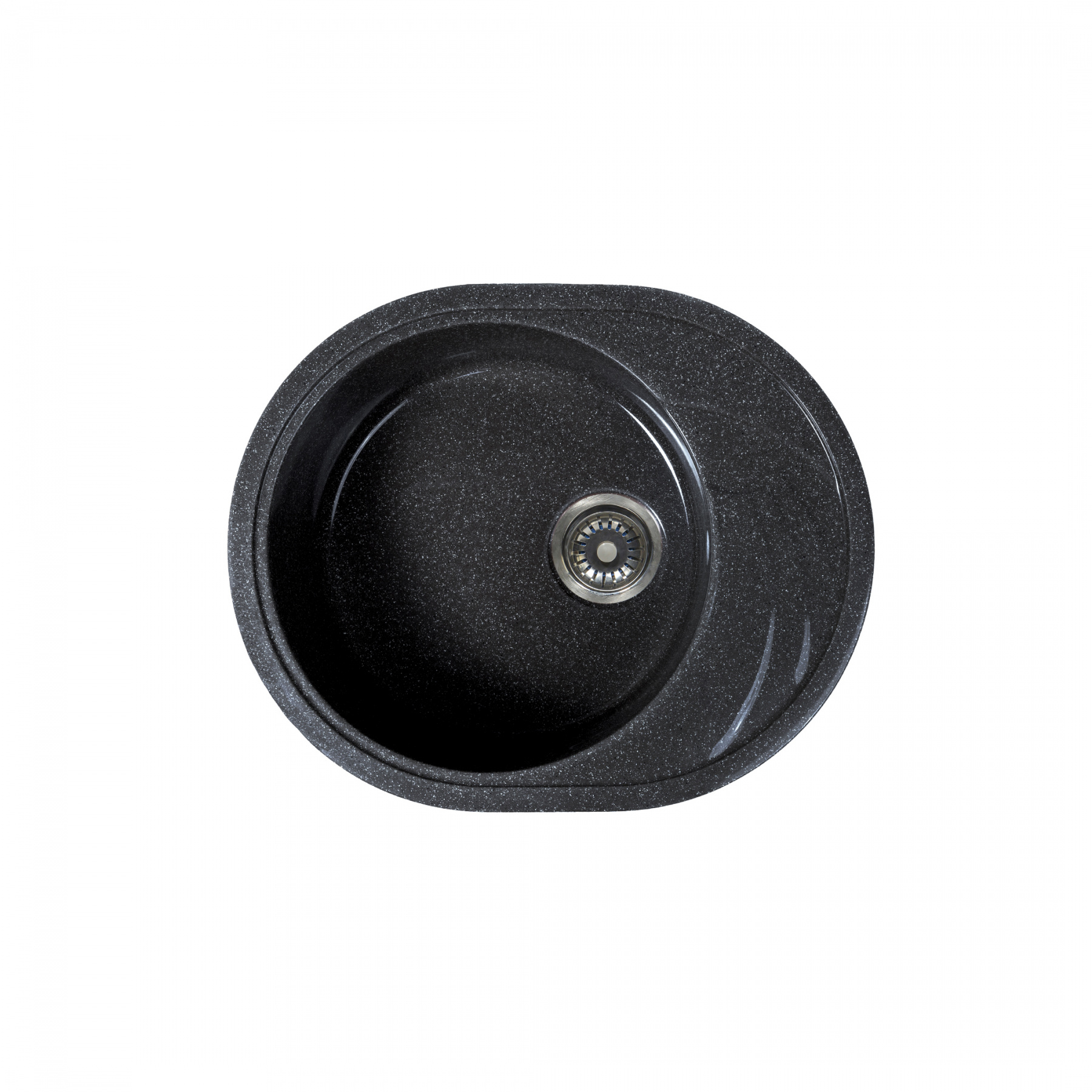 Мойка каменная, круглая одночашевая, 500*500мм, черный, врезная, Granfest