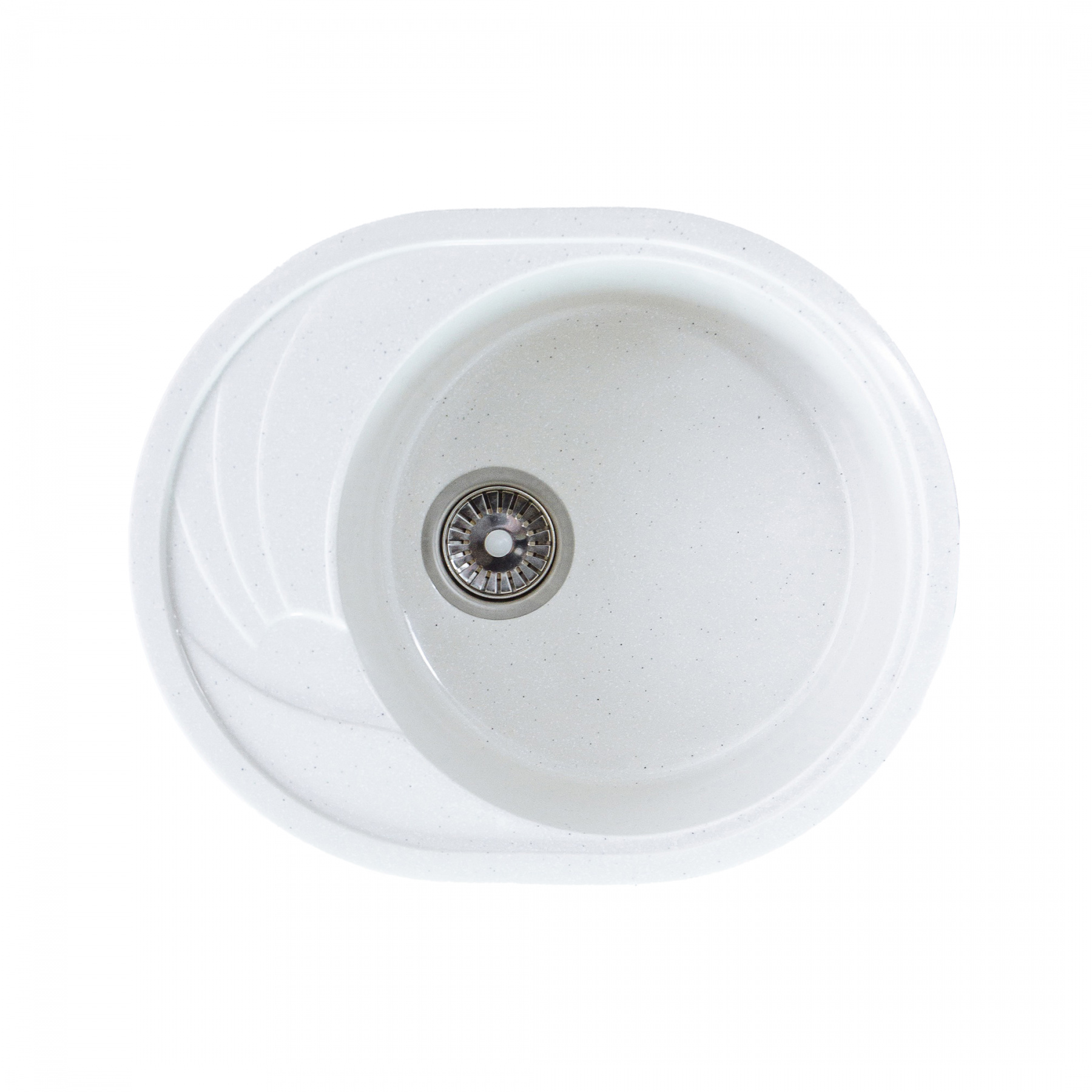 Мойка каменная, овальная одночашевая с крылом, S-20, 560*460мм, белый крап, врезная, Sim Gran