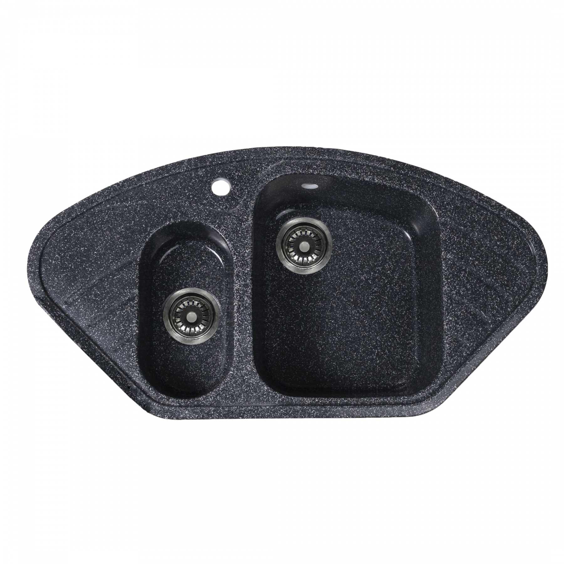 Мойка каменная, угловая двухчашевая, S-31, 945*500мм, асфальт, врезная, Sim Gran