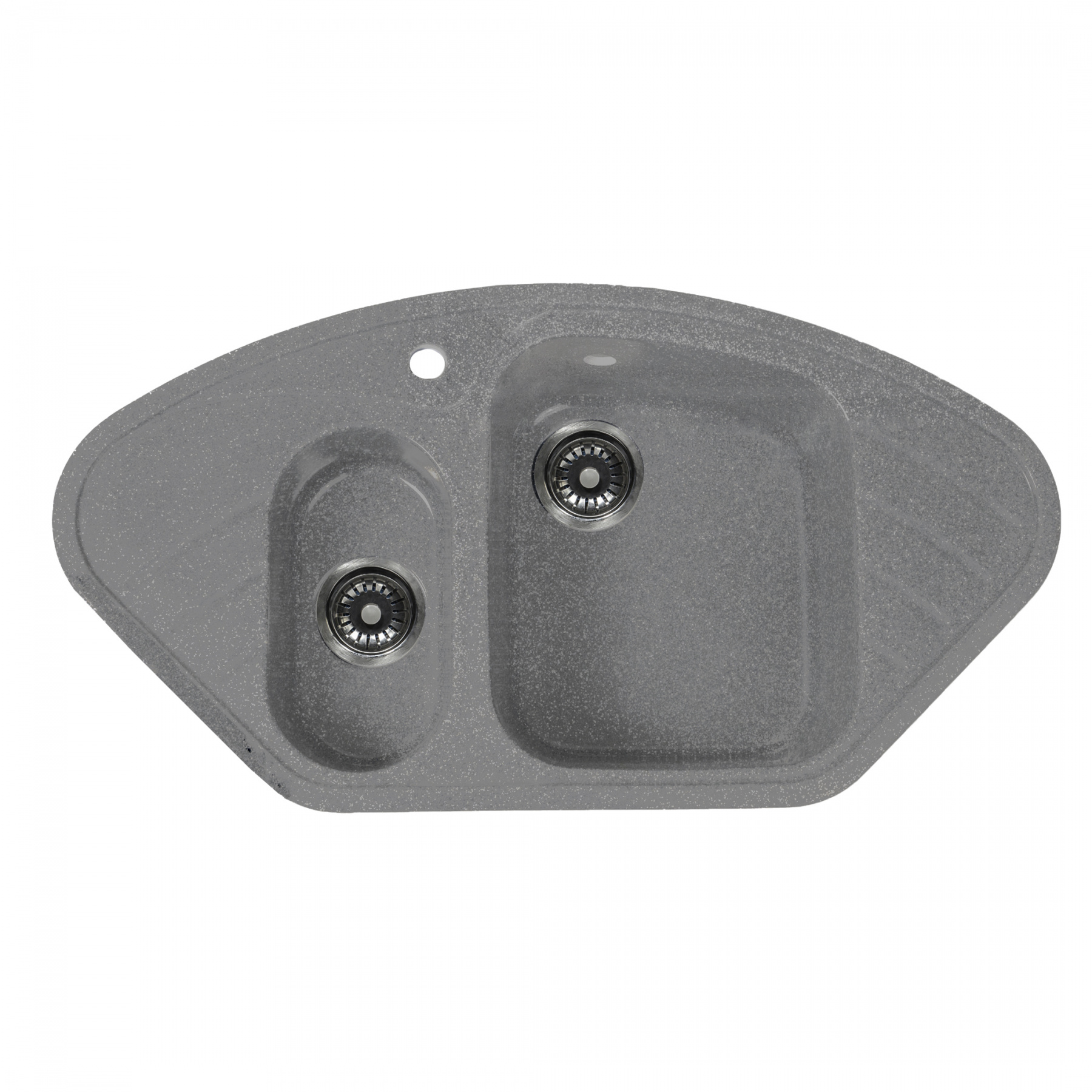 Мойка каменная, угловая двухчашевая, S-31, 945*500мм, темно-серый, врезная, Sim Gran