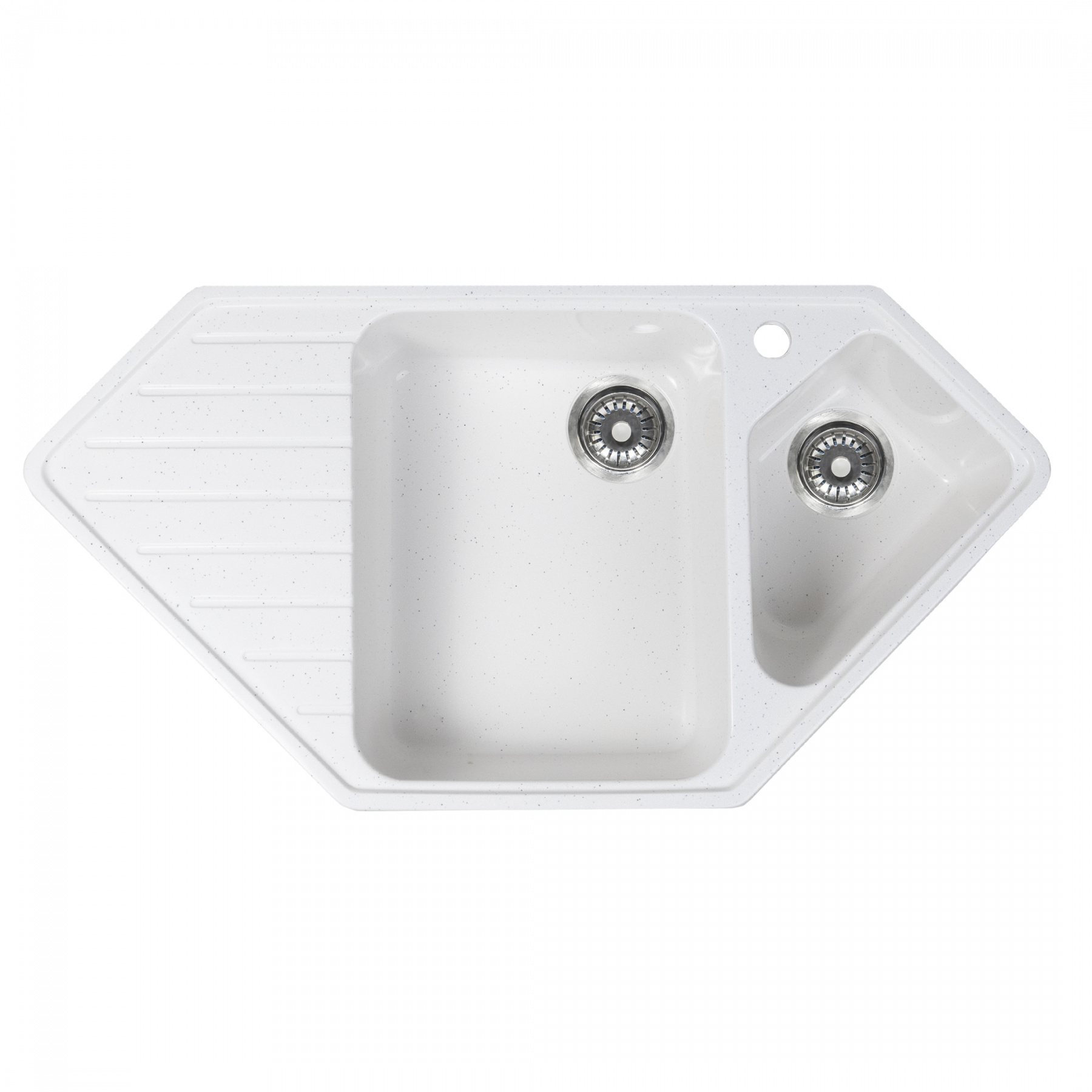 Мойка каменная, угловая двухчашевая, S-32, 970*500мм, белый крап, врезная, Sim Gran