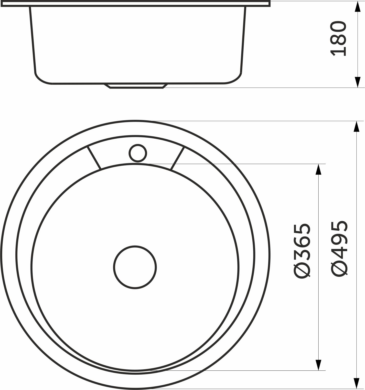 Мойка н/сталь, круглая одночашевая, d495мм, матовый хром, врезн на столешницу, AKS (0,8мм)