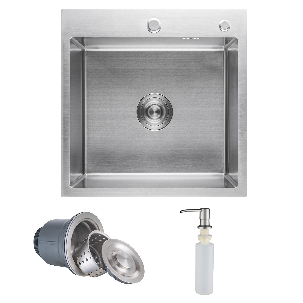 Мойка н/сталь, квадратная одночашевая, 500*500мм, cатин, врезн на/вровень столешнице, AKS (3,2мм)