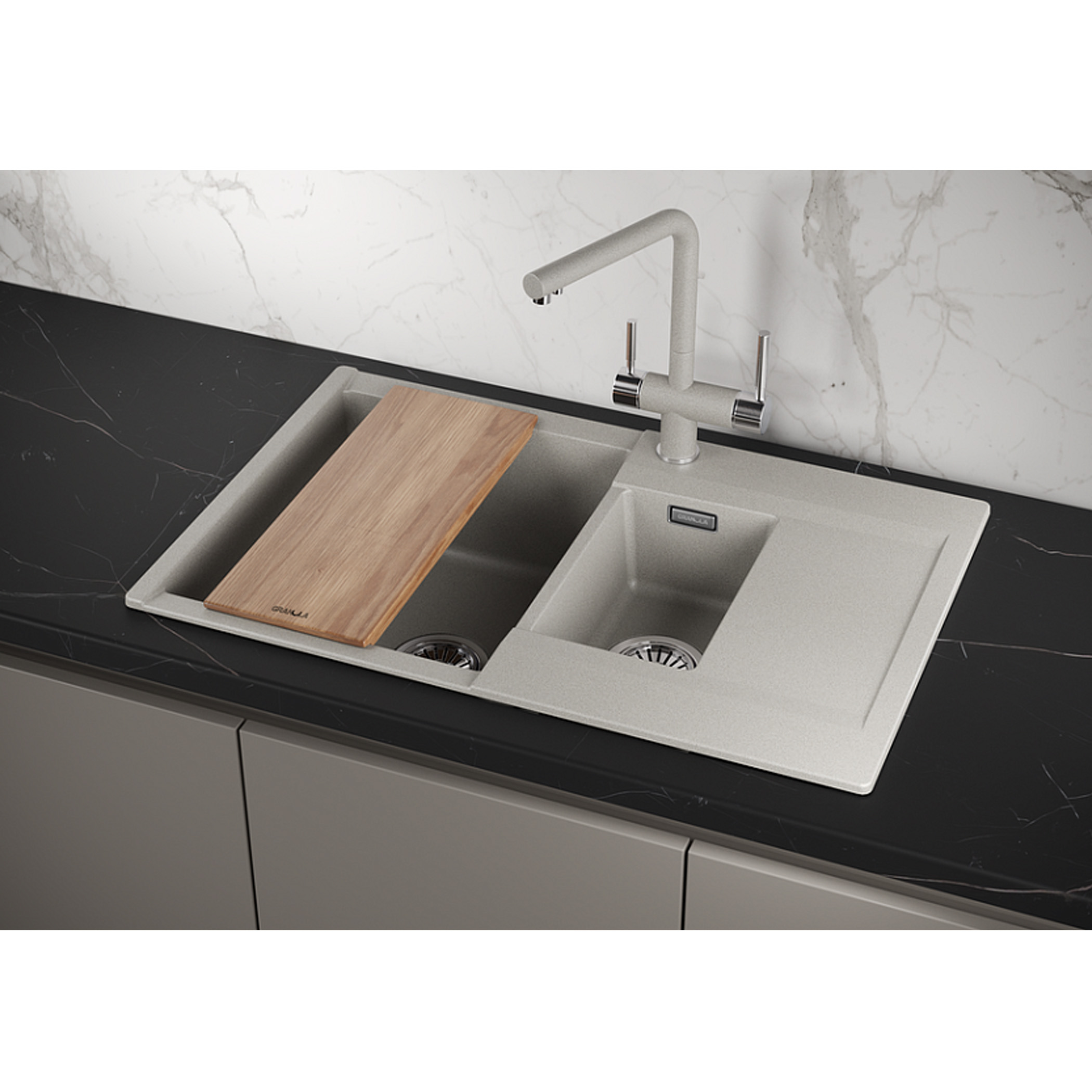 Мойки из кварцевого камня российского бренда Granula, который хорошо зарекомендовал себя в странах СНГ.