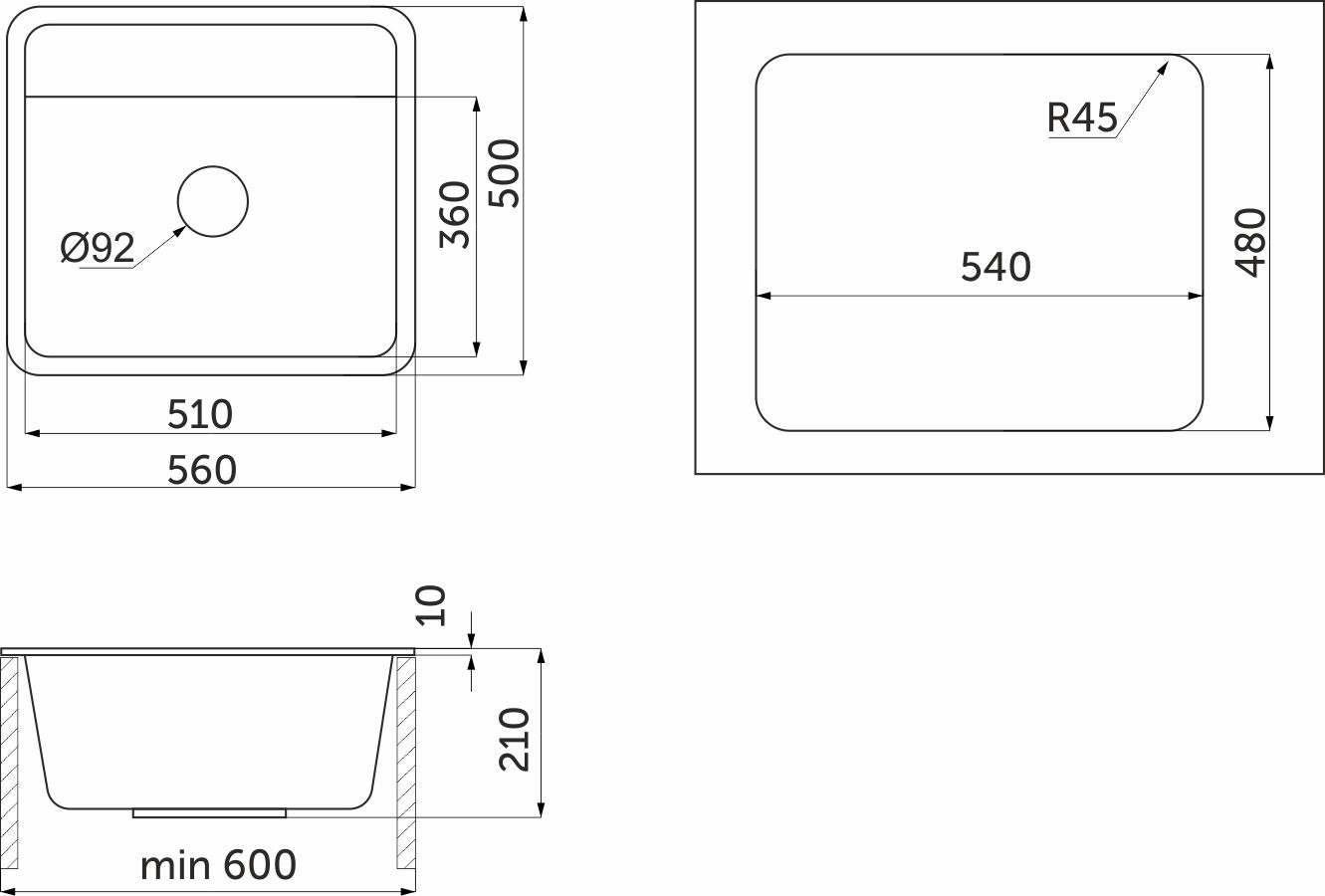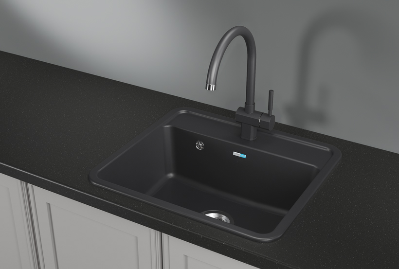 Мойка кварцевая, прямоугольная, ST-5601, 560*500мм, черный, Granula