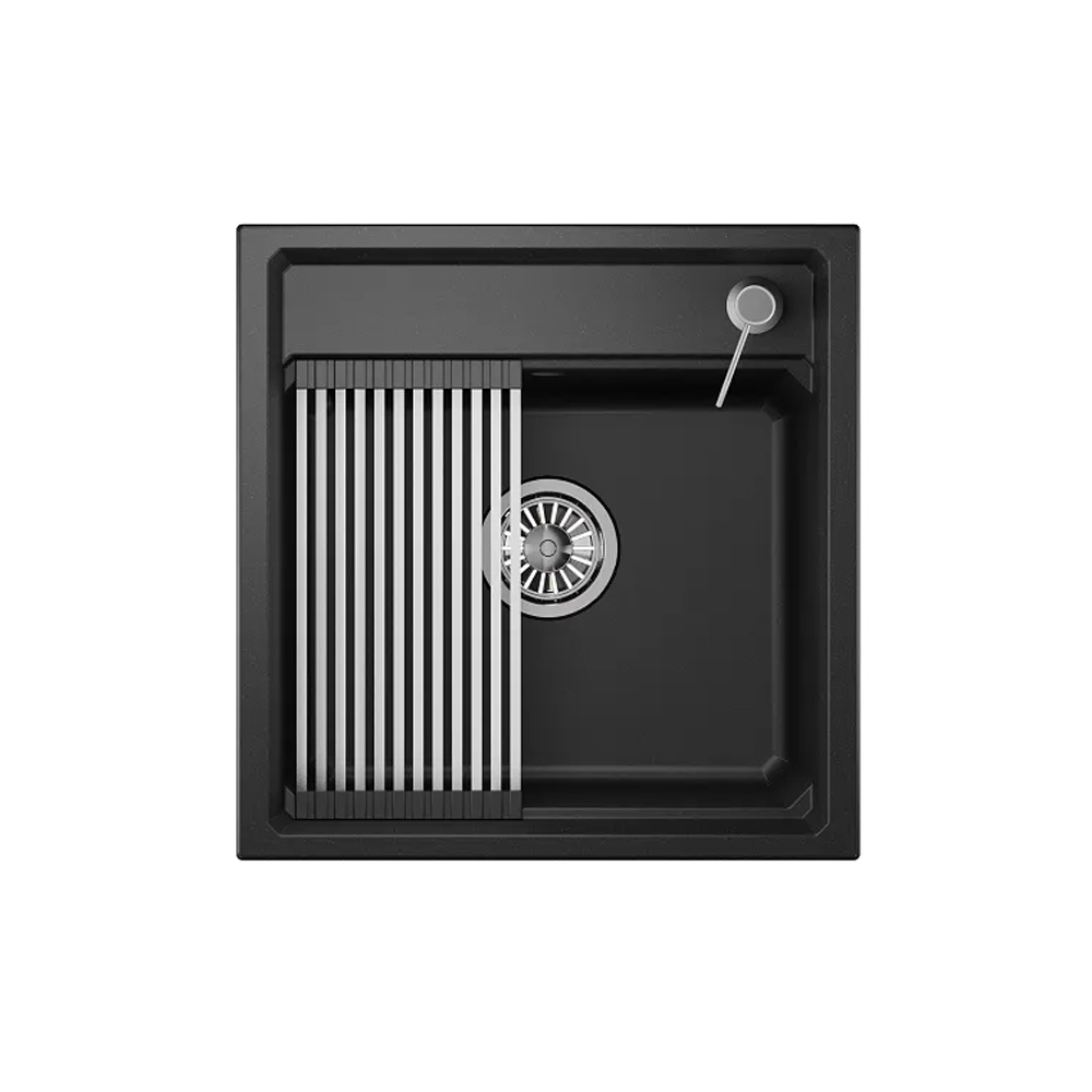 Подходит для установки в шкаф размером 500 мм. Для удобства использования в чаше имеется площадка для установки ролл-мата или разделочной доски. В комплекте: сифон с отводом для бытовой техники, дозатор для жидкого мыла (нержавейка) и ролл-мат.