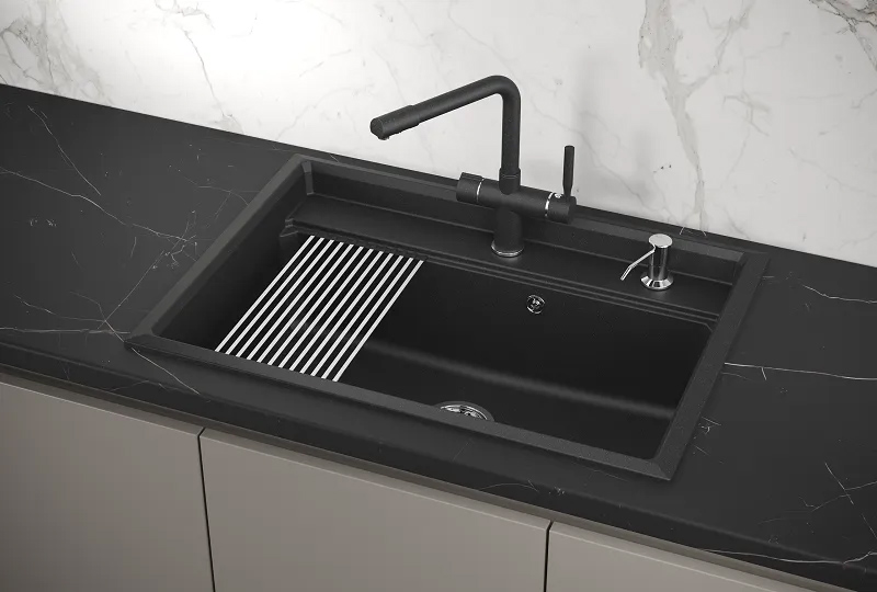 Мойка кварцевая, прямоугольная, ST-7602, 760*500мм, черный, Granula