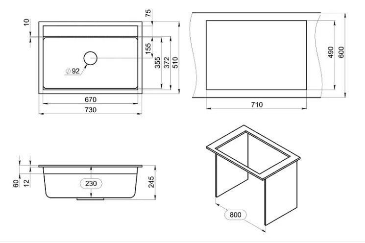Подходит для установки в шкаф размером 800 мм. Для удобства использования в чаше имеется площадка для установки ролл-мата или разделочной доски. В комплекте: сифон с отводом для бытовой техники, дозатор для жидкого мыла (нержавейка) и ролл-мат.