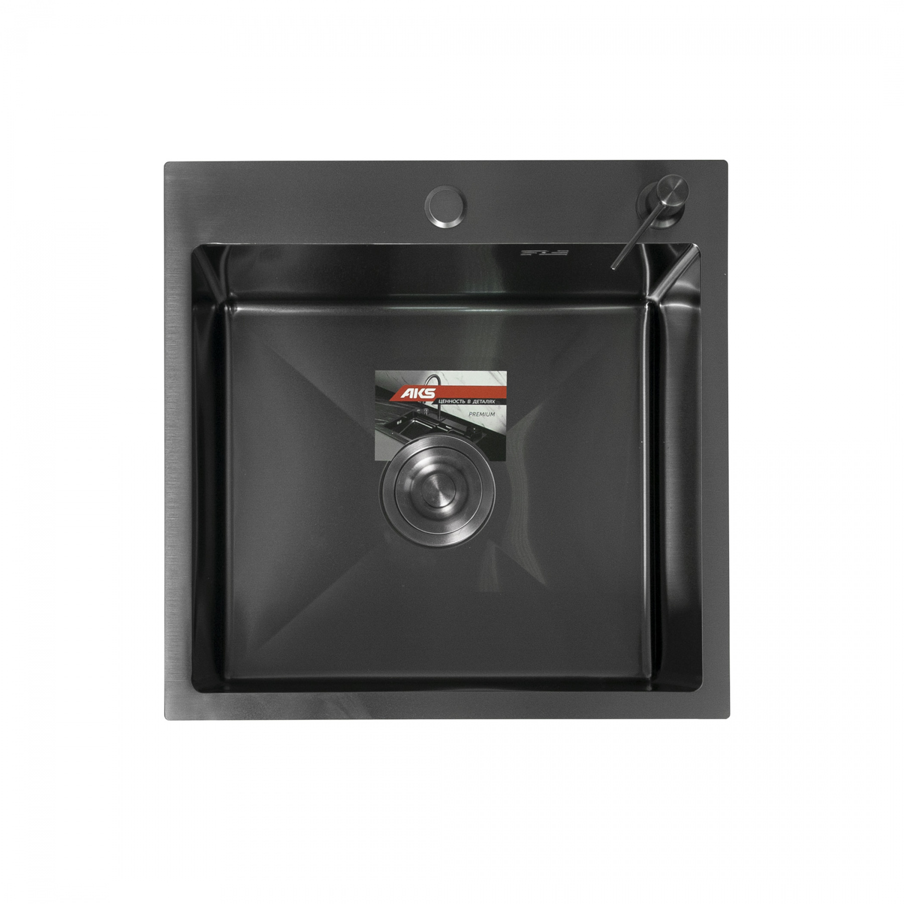 Мойка н/сталь, квадратная одночашевая, 500*500мм, графит, PVD покрытие, врезн на столешницу, AKS (3,2мм)