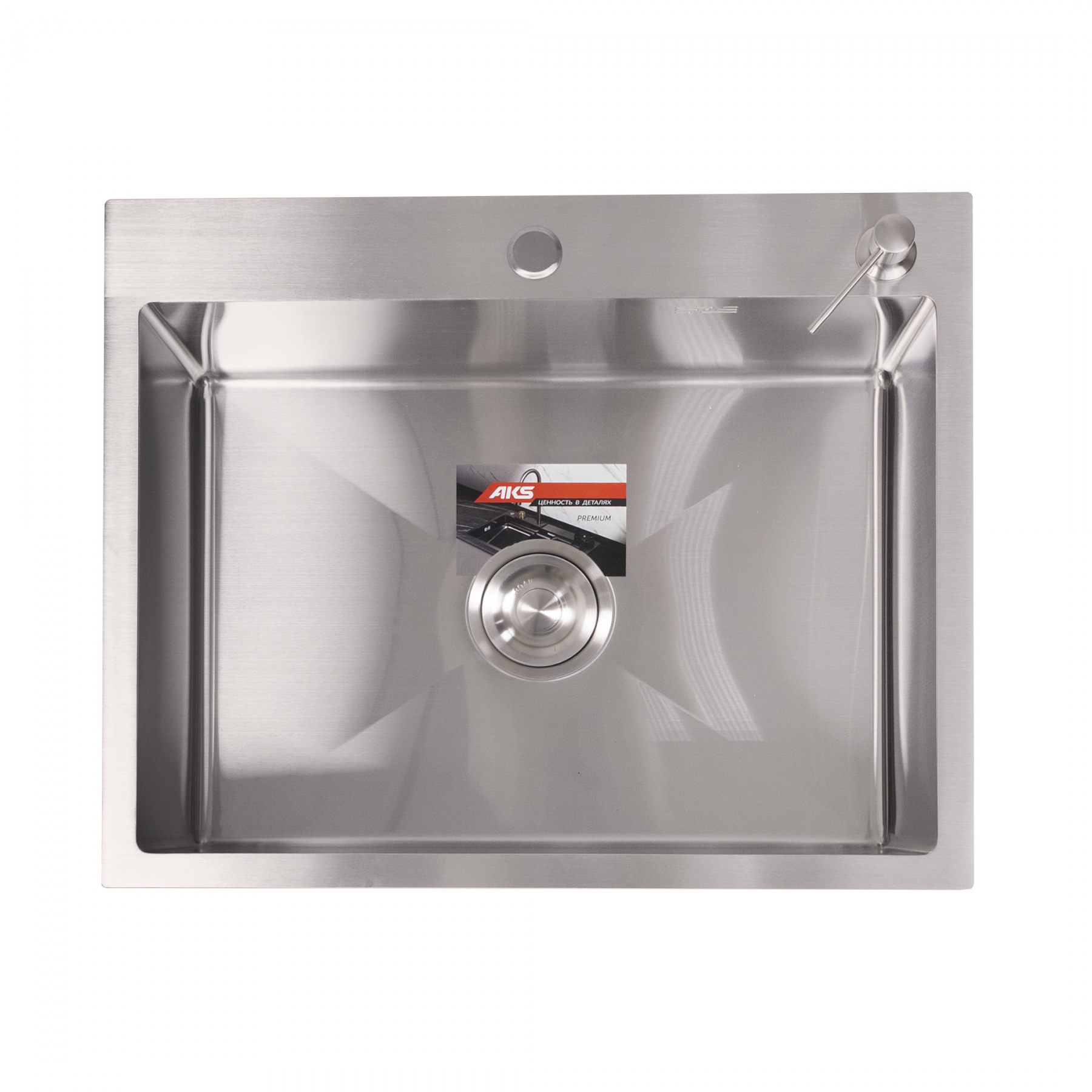 Мойка н/сталь, прямоугольная одночашевая, 570*460мм, глянец сатин, универсальная, AKS (3,2 мм)