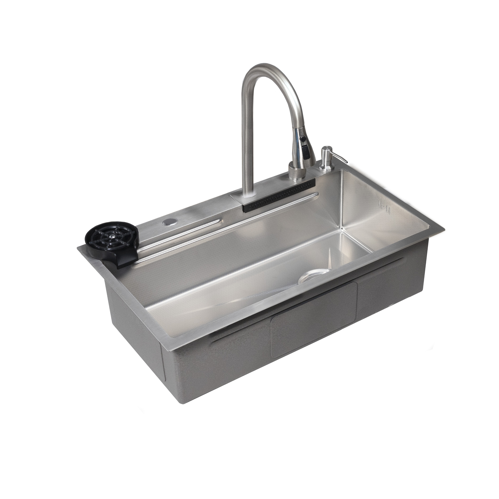 Мойка н/сталь, прямоугольная одночашевая, со смесителем, 750*450мм, соты сатин, PVD, врезн на/вровень столешнице, AKS (3,2мм)