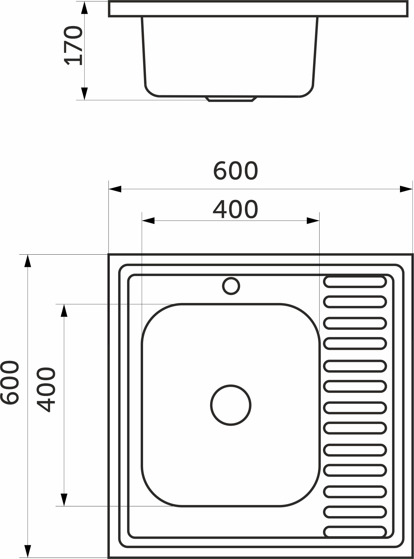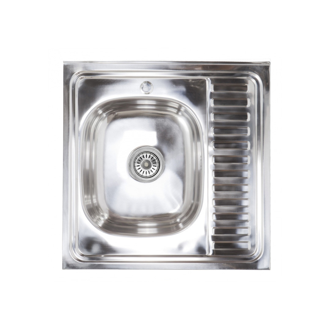 Мойка н/сталь, квадратная одночашевая, 600*600мм, полир хром, мойка слева, накладная, AKS (0,6мм)
