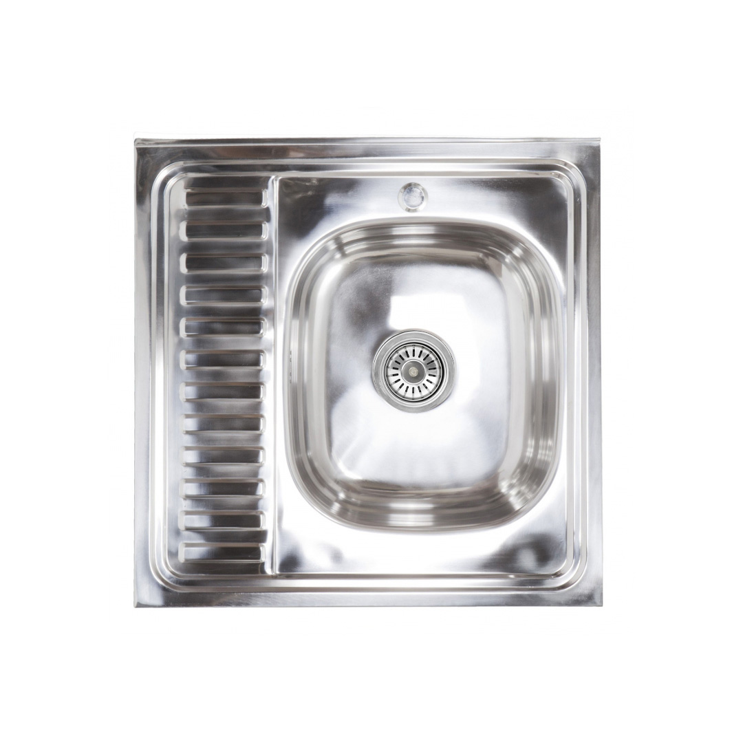 Мойка н/сталь, квадратная одночашевая, 600*600мм, полир хром, мойка справа, накладная, AKS (0,6мм)
