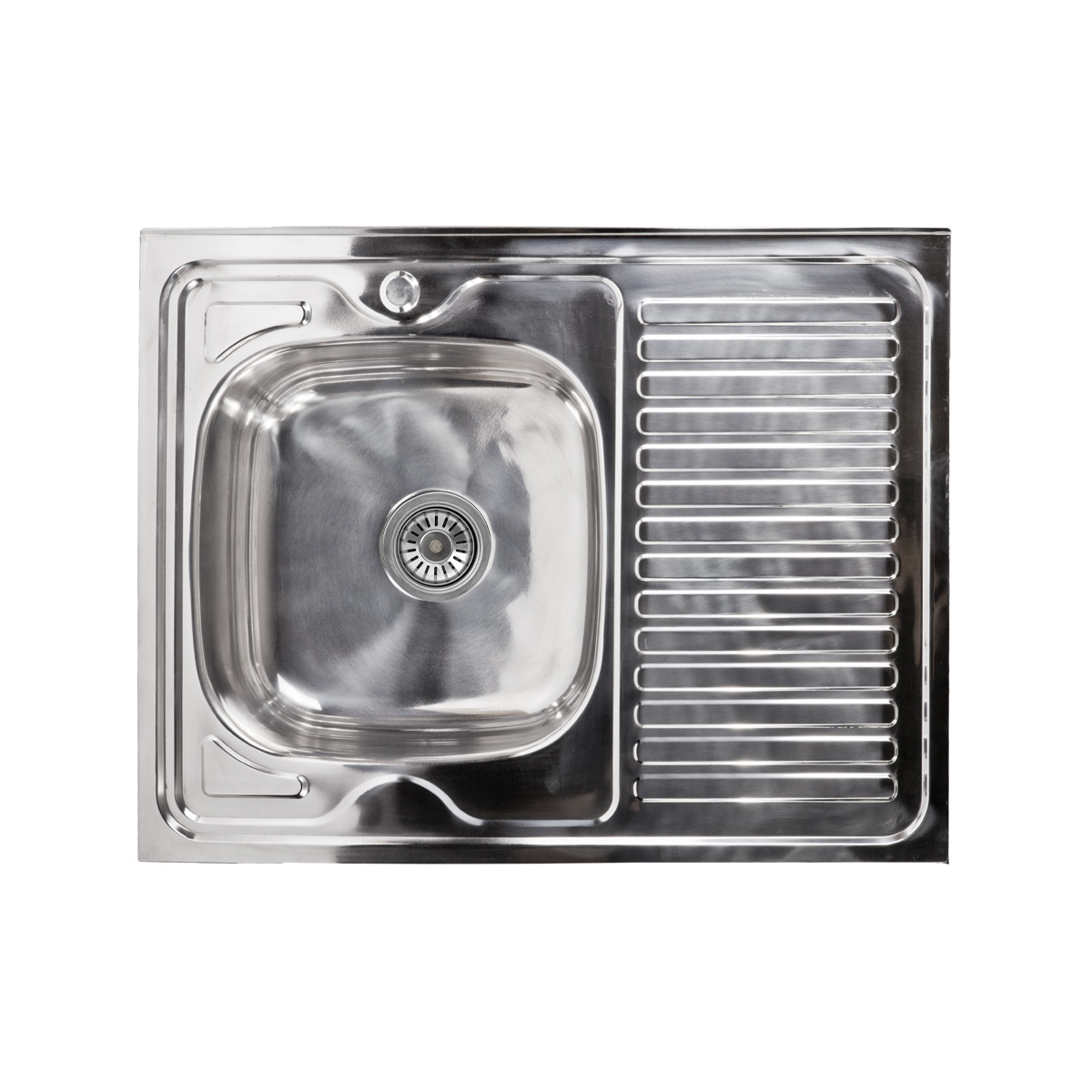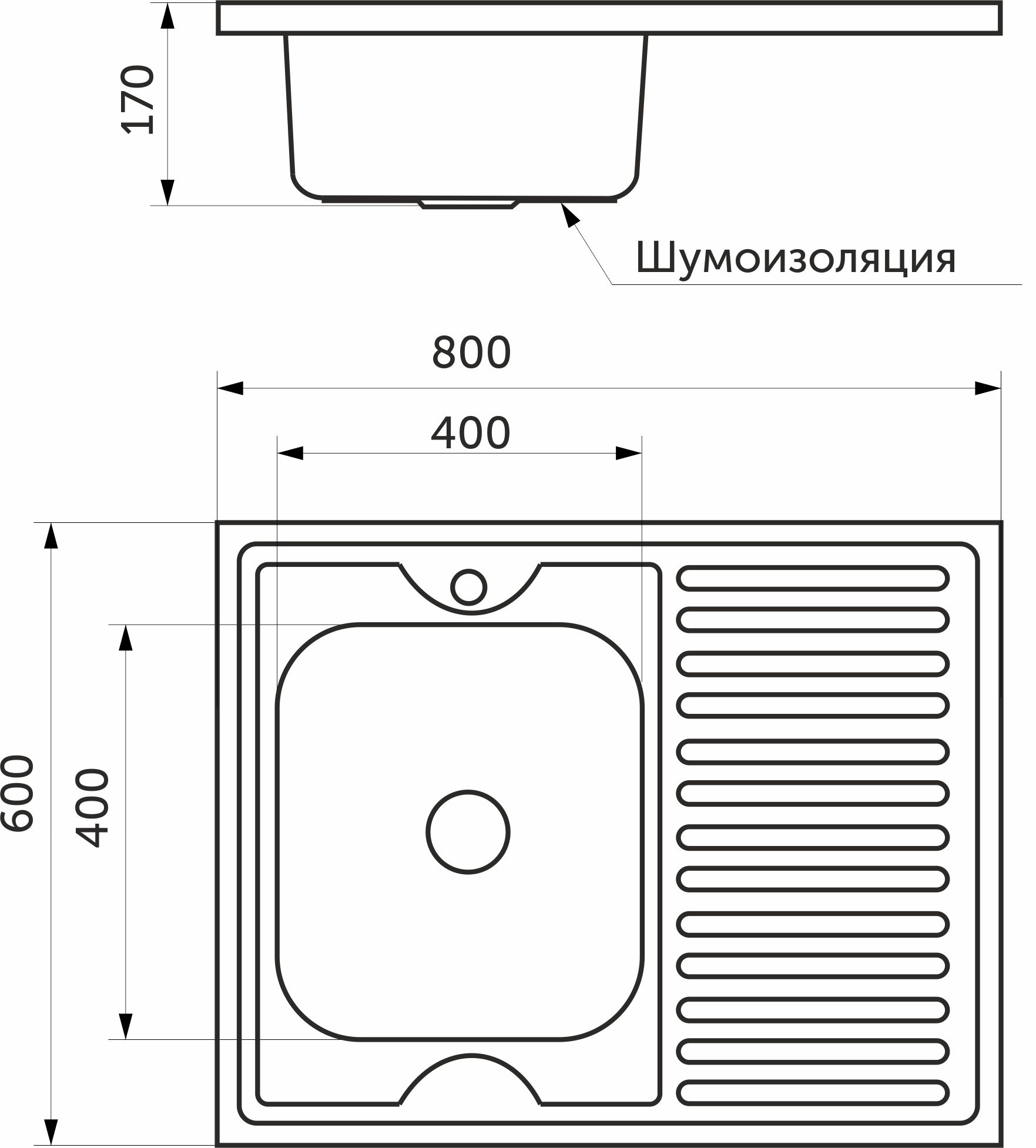Мойка н/сталь, прямоугольная одночашевая, 800*600мм, полир хром, мойка слева, накладная, AKS (0,6мм)