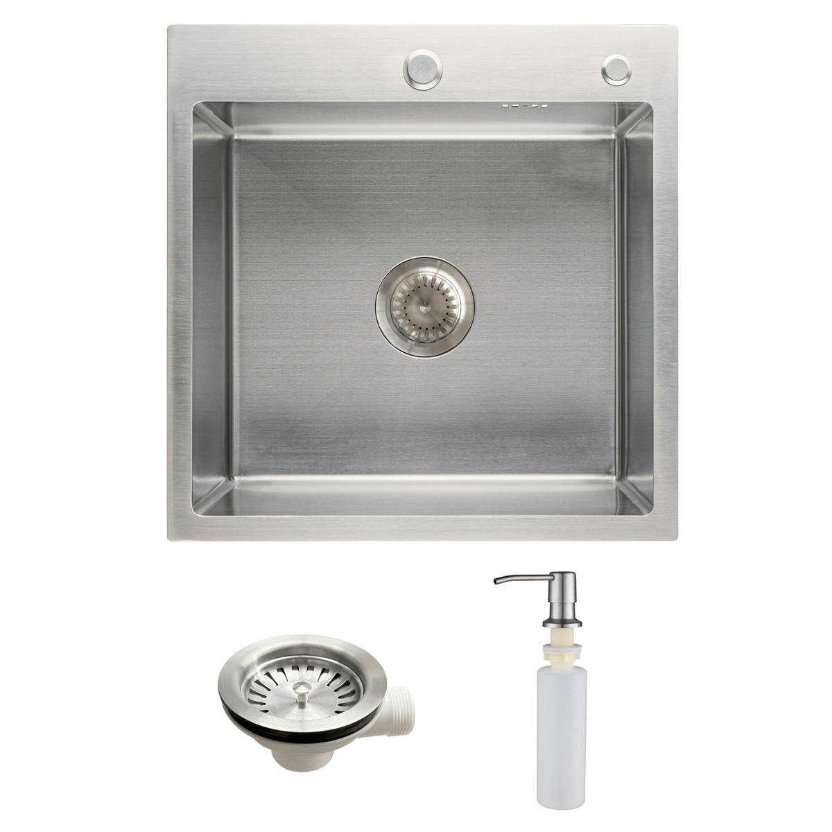 Мойка н/сталь, квадратная одночашевая, 500*500мм, мат сатин, PVD, врезн на/вровень столешнице, AKS (3,2мм)