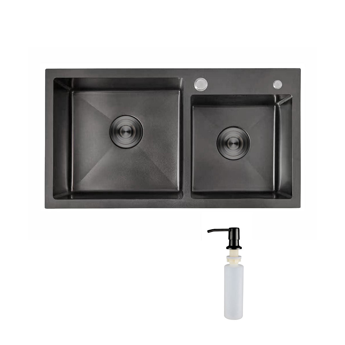 Мойка н/сталь, прямоугольная двухчашевая, 780*430мм, черный, универсальная (3,2мм)