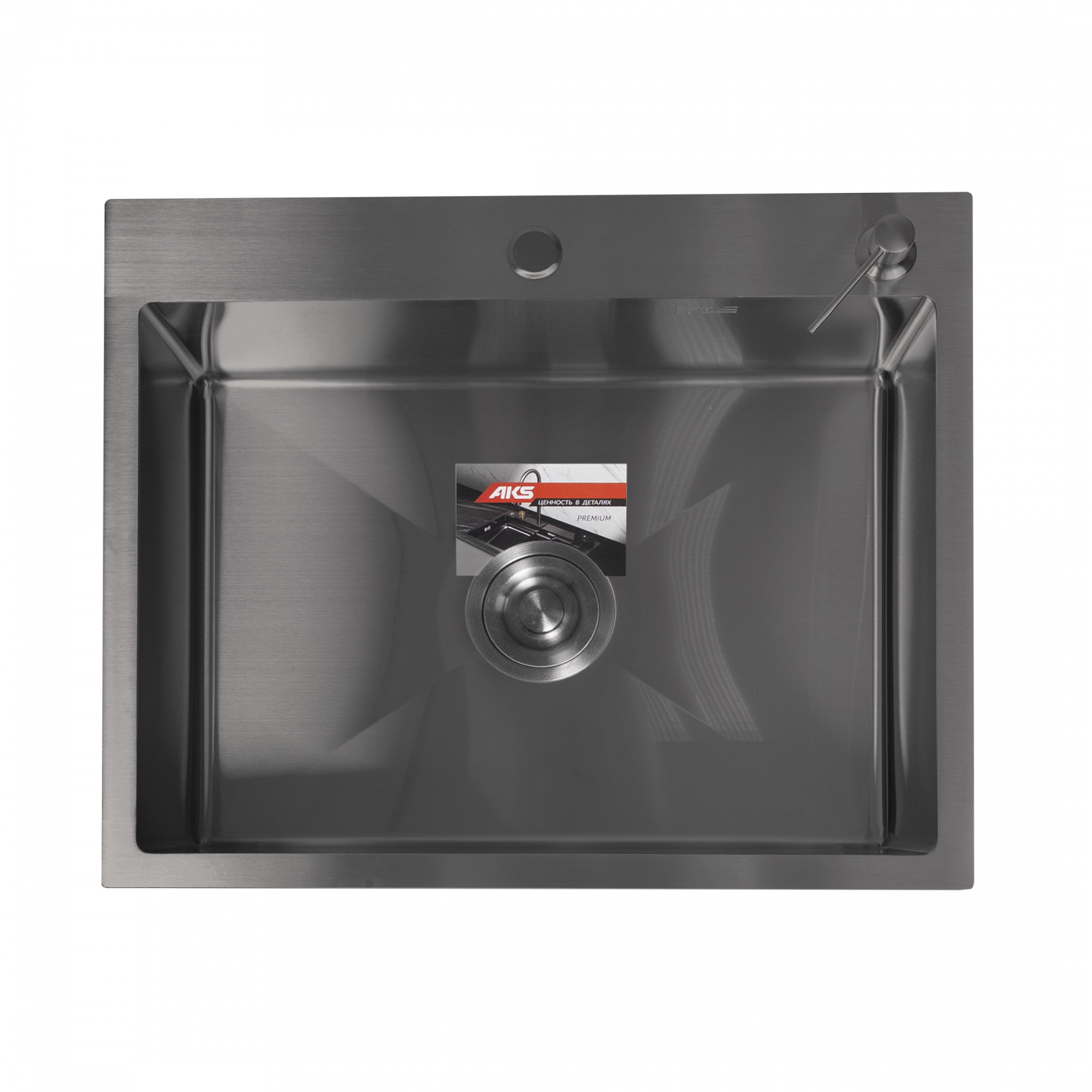 Мойка н/сталь, прямоугольная одночашевая, 600*500мм, графит, PVD покрытие, врезн на столешницу, AKS (3,2мм)