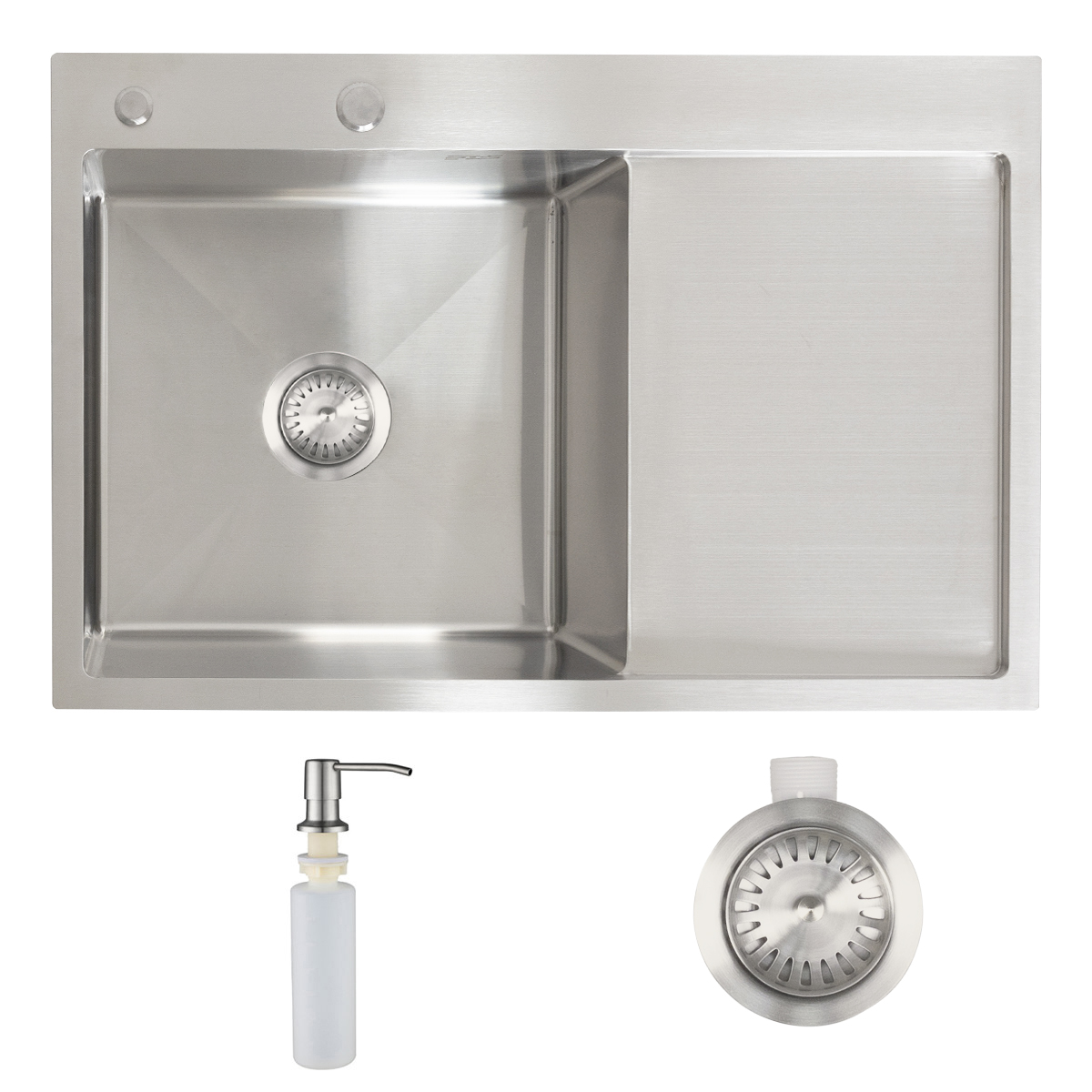 - в комплекте: мойка, крепления, сифон, дозатор для мыла;