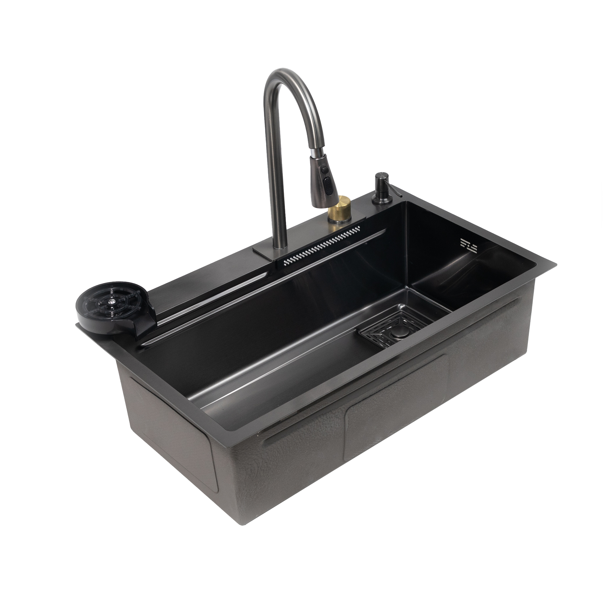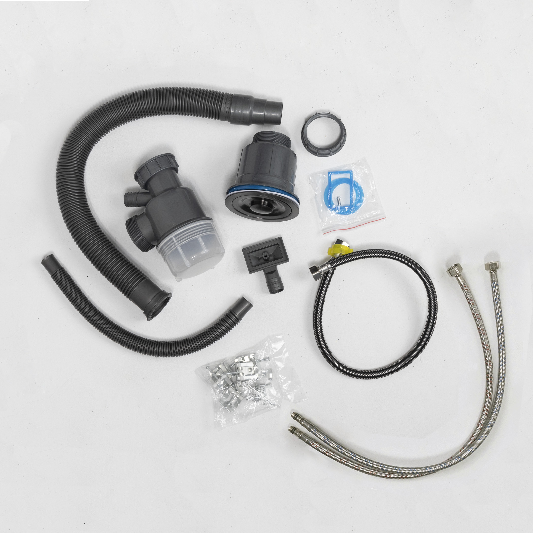 - в комплекте: мойка, смеситель с "водопадом", ринзер, коландер 2 шт, разделочная доска, сифон, крепления, дозатор для мыла;