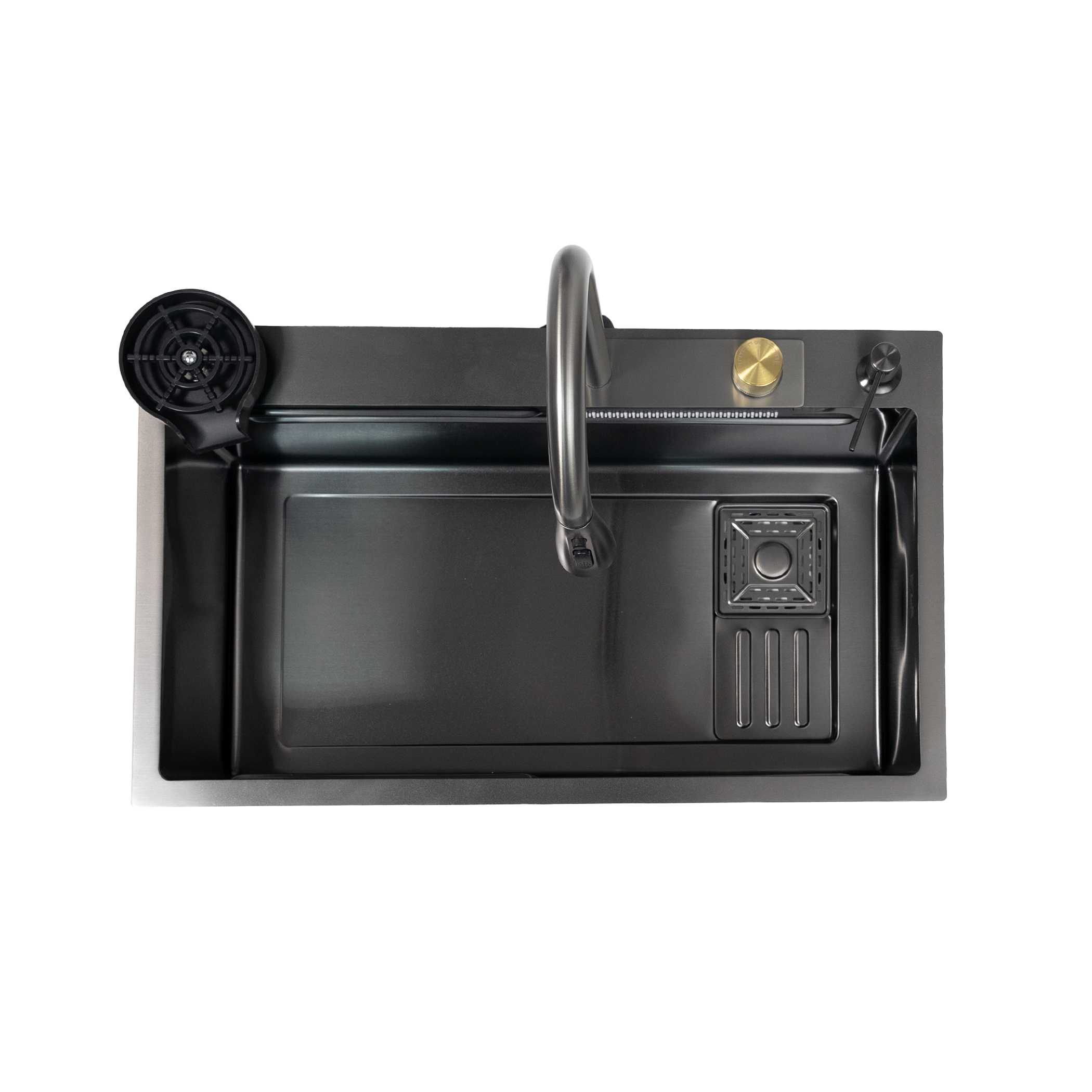 Мойка н/сталь, прямоугольная одночашевая со смесителем, 750*450мм, графит, PVD покрытие, врезн на/вровень столешнице, AKS (3,2мм)
