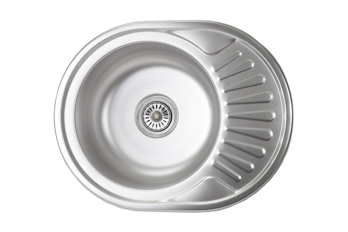 Мойка н/сталь, овальная одночашевая, 570*450мм, декорированная хром, врезн на столешницу, AKS (0,8мм)