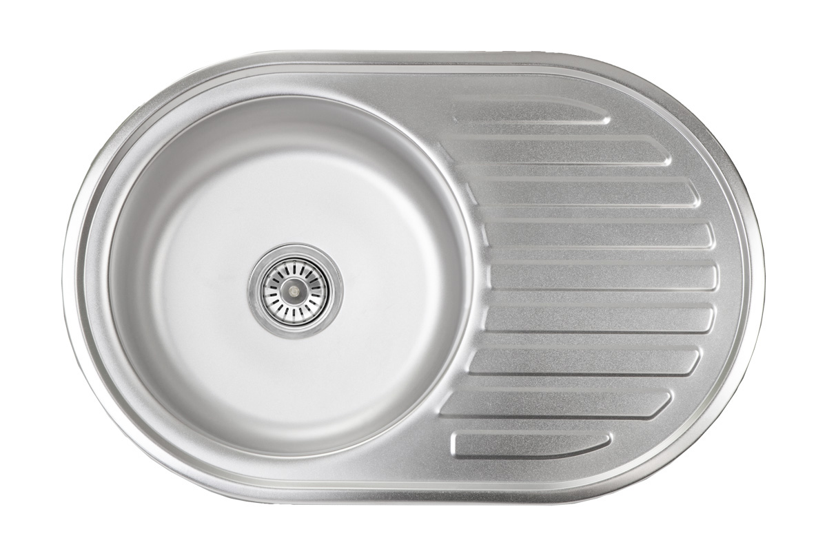 Мойка н/сталь, овальная одночашевая, 770*500мм, матовый хром, врезн на столешницу, AKS (0,8мм)