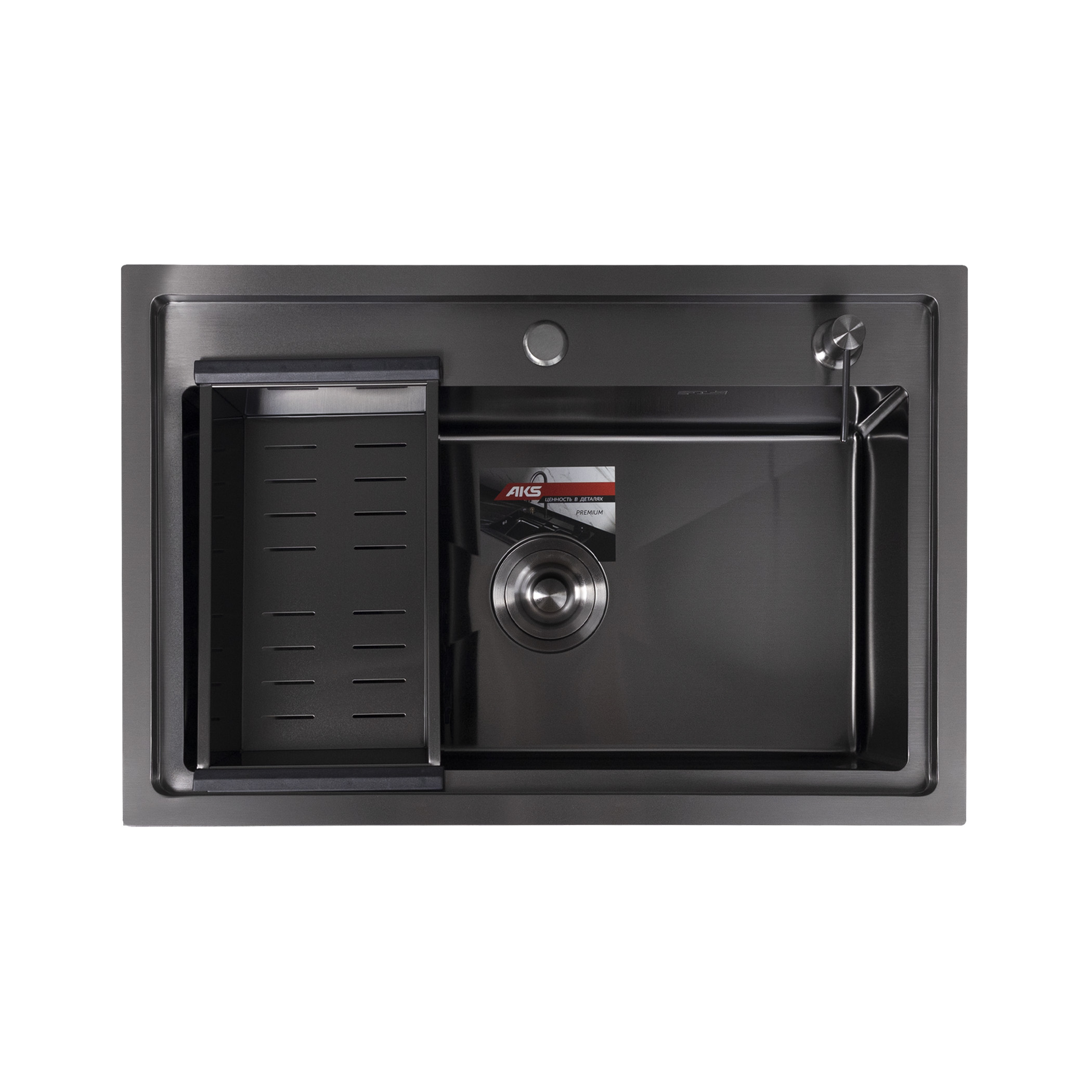 Мойка н/сталь, прямоугольная одночашевая, 700*460мм, глянец черный, врезн на/вровень столешнице, AKS (3,2мм)