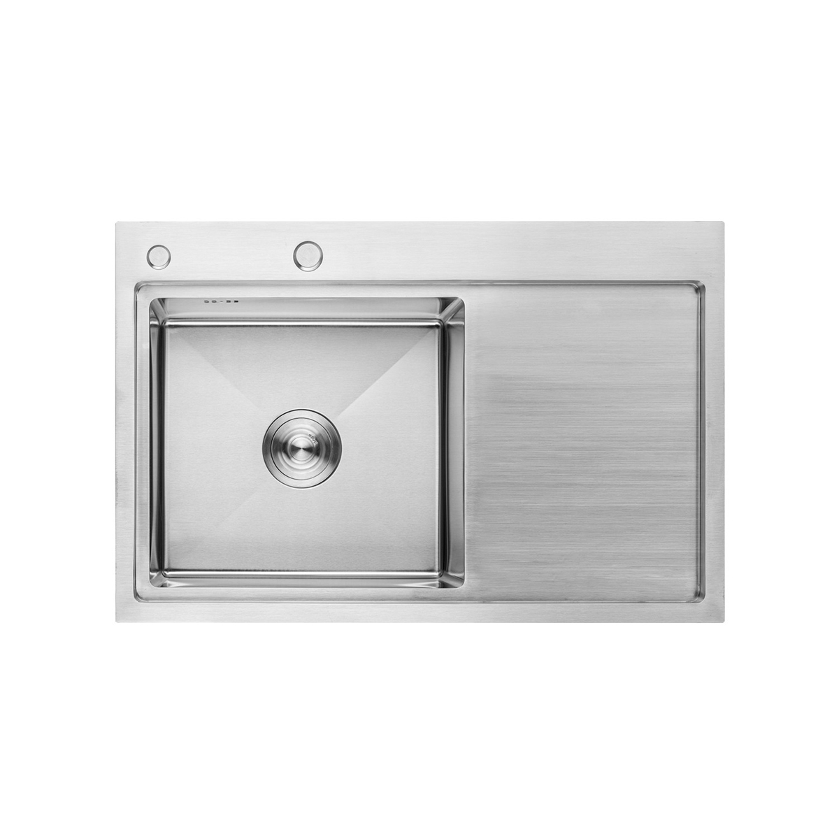 Мойка н/сталь, прямоугольная одночашевая, 780*510мм, сатин, мойка слева, врезн на/вровень столешнице, AKS (3,2мм)
