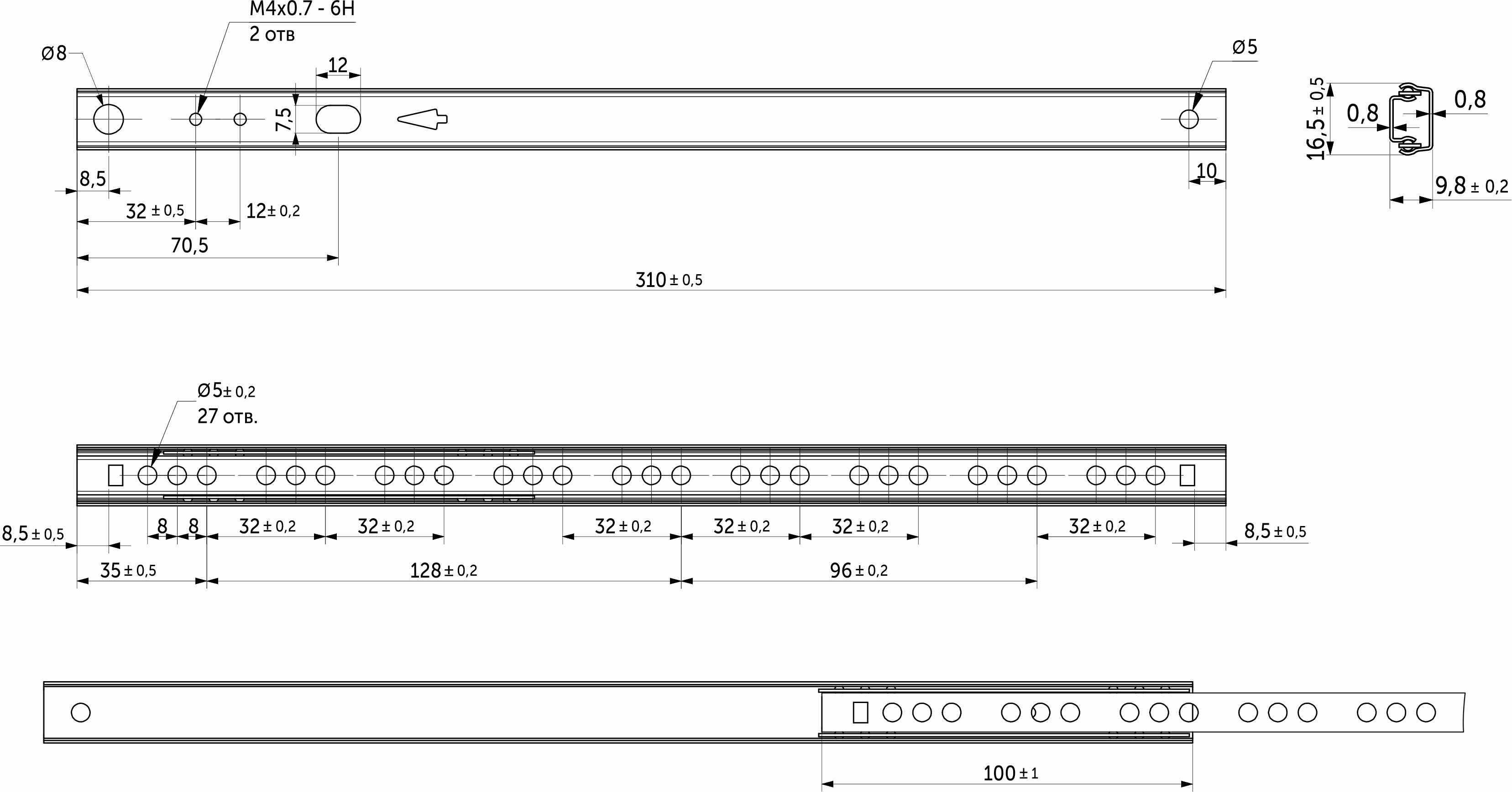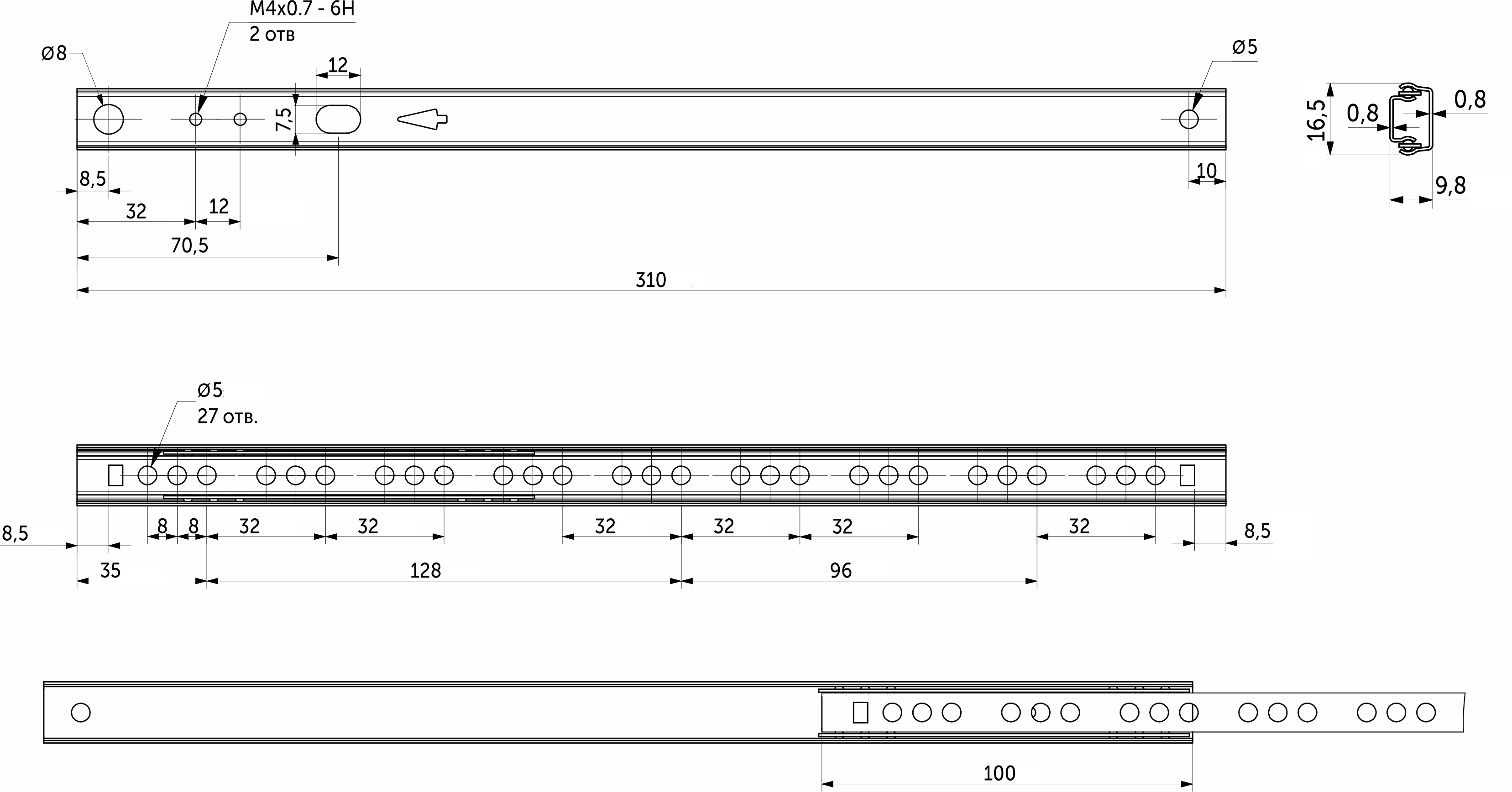 Направляющая с шарикоподшипниковым механизмом (сепаратор пластиковый) и телескопической структурой, обеспечивает неполное выдвижение (3/4). Высота 17 мм. Нагрузка до 10 кг. Изготовлена из холоднокатаной стали. Размерный ряд от 182 до 406 мм. Материал "тележки": нейлон.