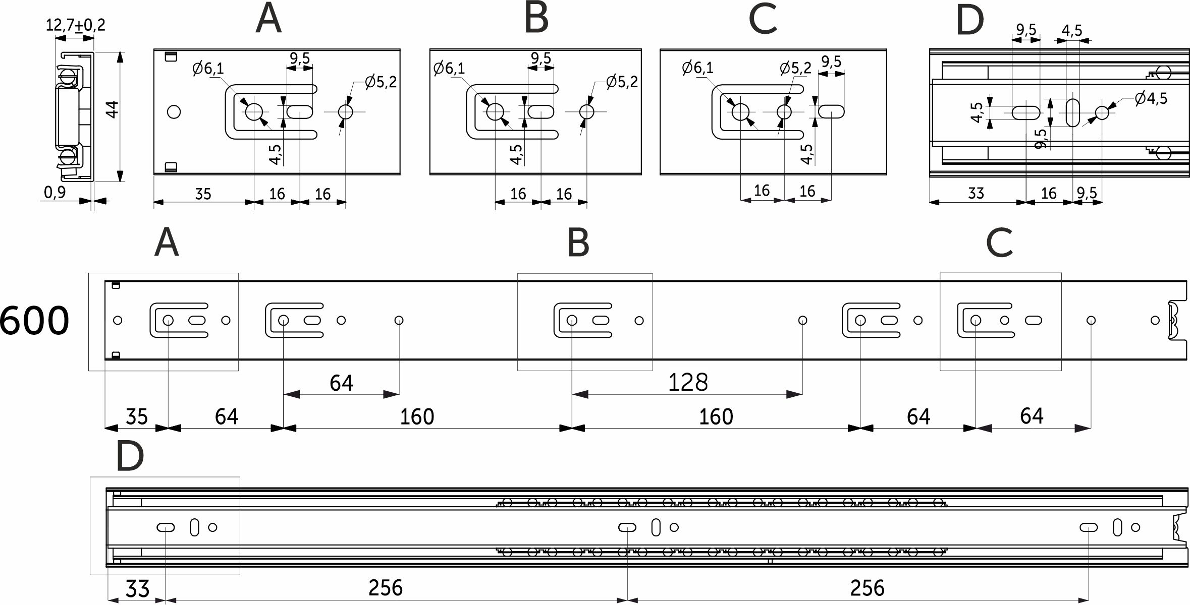 Классическая направляющая с шарикоподшипниковым механизмом и телескопической структурой, обеспечивает полное выдвижение. Высота 45 мм ( бренд AKS LIGHT в 42 мм высоте). Нагрузки от 20 до 35 кг в зависимости от бренда. Изготовлена из холоднокатаной стали. Доступный размерный ряд от 250 до 750 мм. Резиновый фиксатор от самопроизвольного открытия.