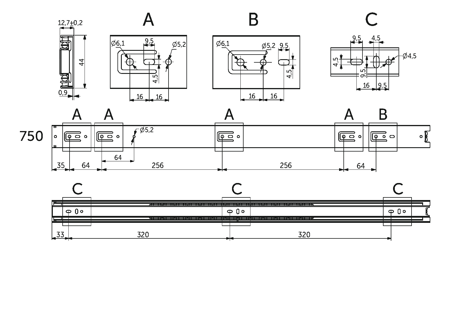 Классическая направляющая с шарикоподшипниковым механизмом и телескопической структурой, обеспечивает полное выдвижение. Высота 45 мм ( бренд AKS LIGHT в 42 мм высоте). Нагрузки от 20 до 35 кг в зависимости от бренда. Изготовлена из холоднокатаной стали. Доступный размерный ряд от 250 до 750 мм. Резиновый фиксатор от самопроизвольного открытия.