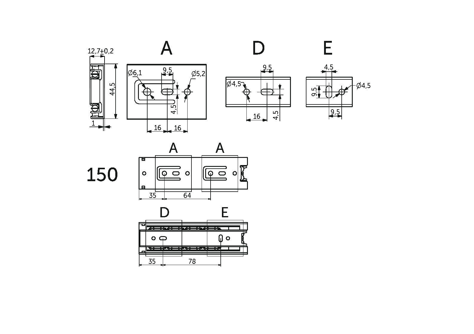 Классическая направляющая с шарикоподшипниковым механизмом и телескопической структурой, обеспечивает полное выдвижение. Высота 45 мм . Изготовлена из холоднокатаной стали. Длина -150 мм. Резиновый фиксатор от самопроизвольного открытия. Нагрузка -35 кг, Толщины 1,0*1,0*1,2 ( запас прочности - 80000 циклов).