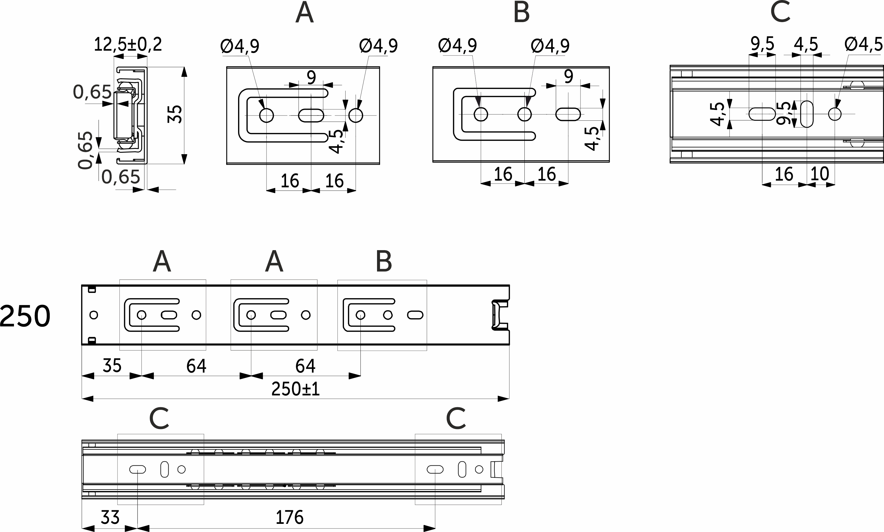 Направляющая шариковая L-250 h=35 GRIDLI A