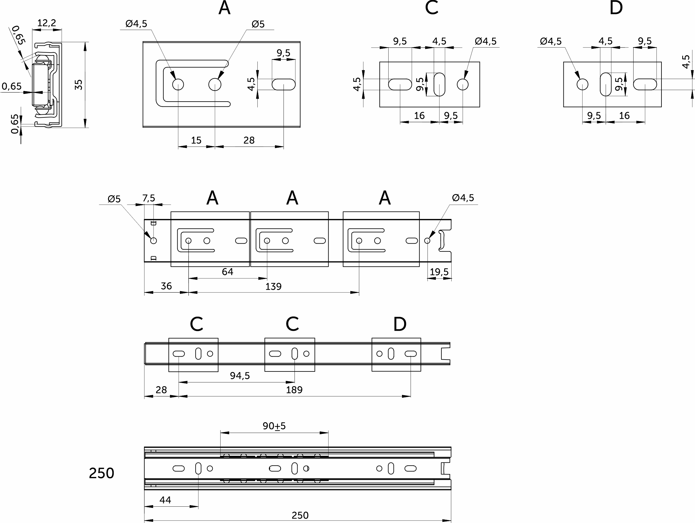 Направляющая для мебели GRIDLI изготовлена из холоднокатаной стали толщиной 0,65*0,65*0,65 мм, имеет резиновый фиксатор от самопроизвольного открытия. Фактическая высота данной направляющей 35 мм, а её длина – 250 мм.