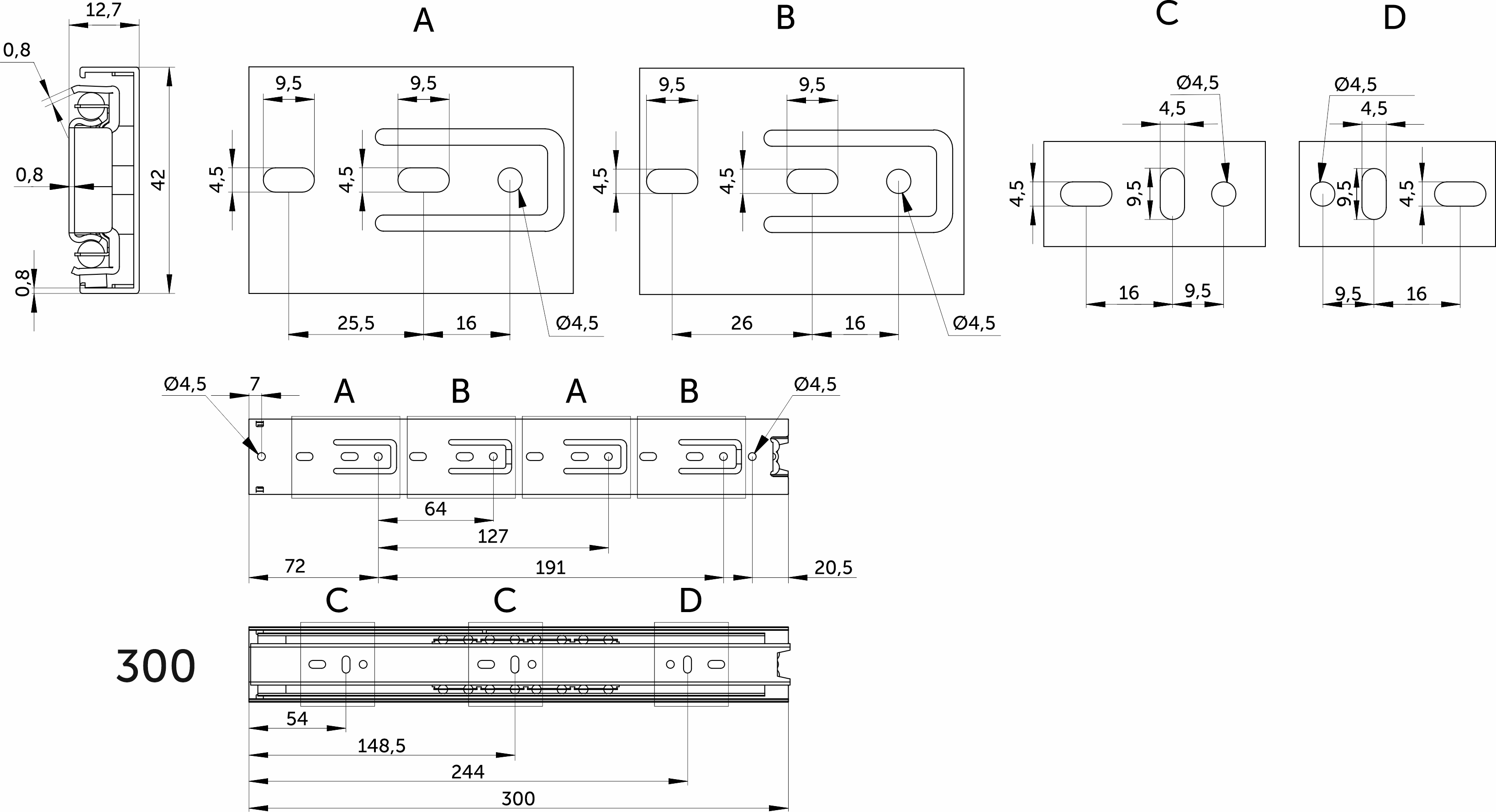 Направляющая шариковая L-300 h=42 GRIDLI B