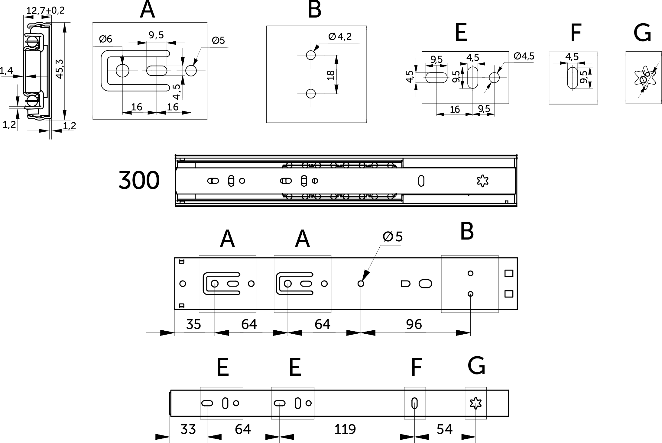 Направляющая шариковая L-300 h=45 PRIME by AKS SOFT CLOSE A черный
