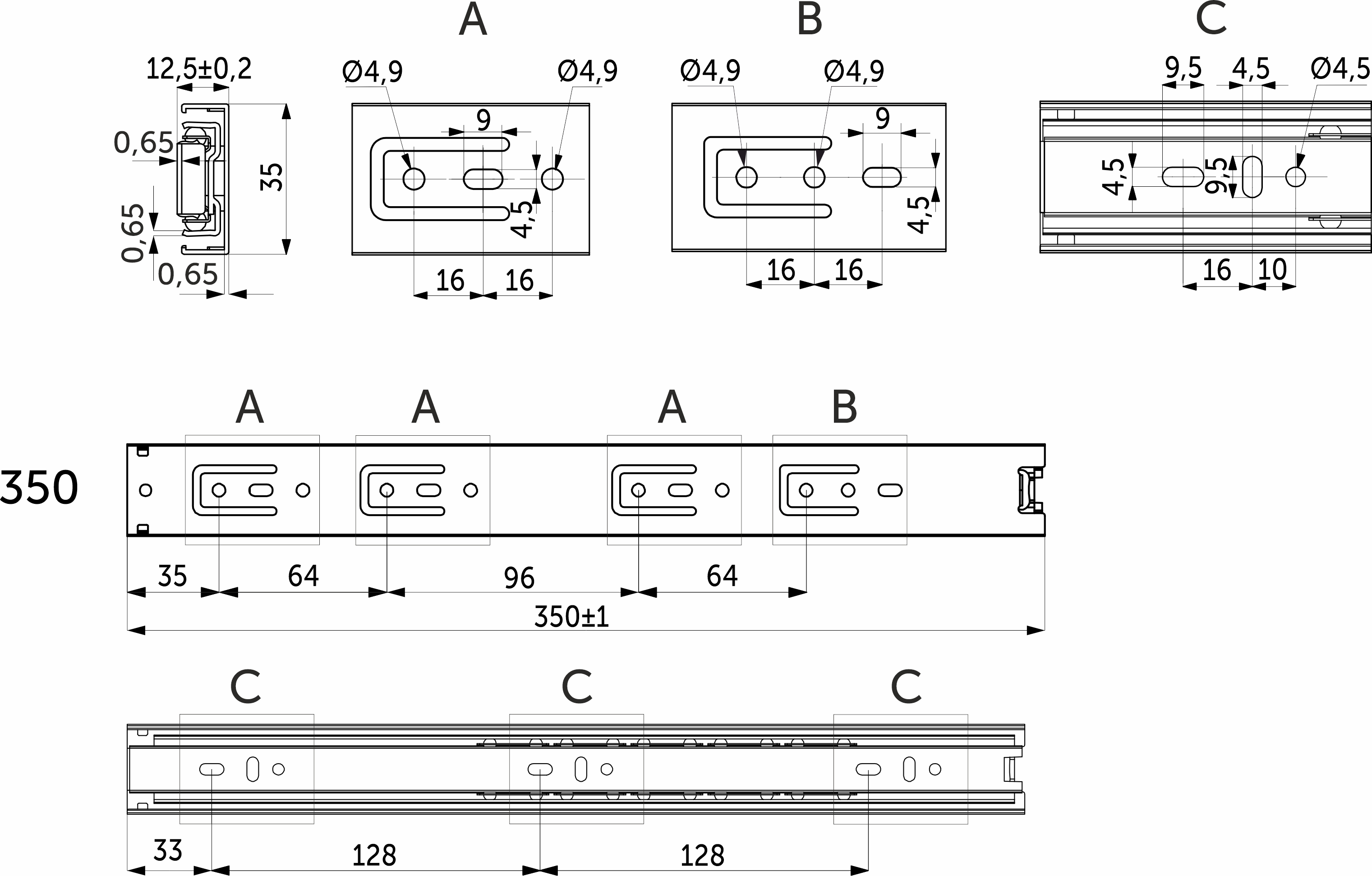 Направляющая шариковая L-350 h=35 GRIDLI A