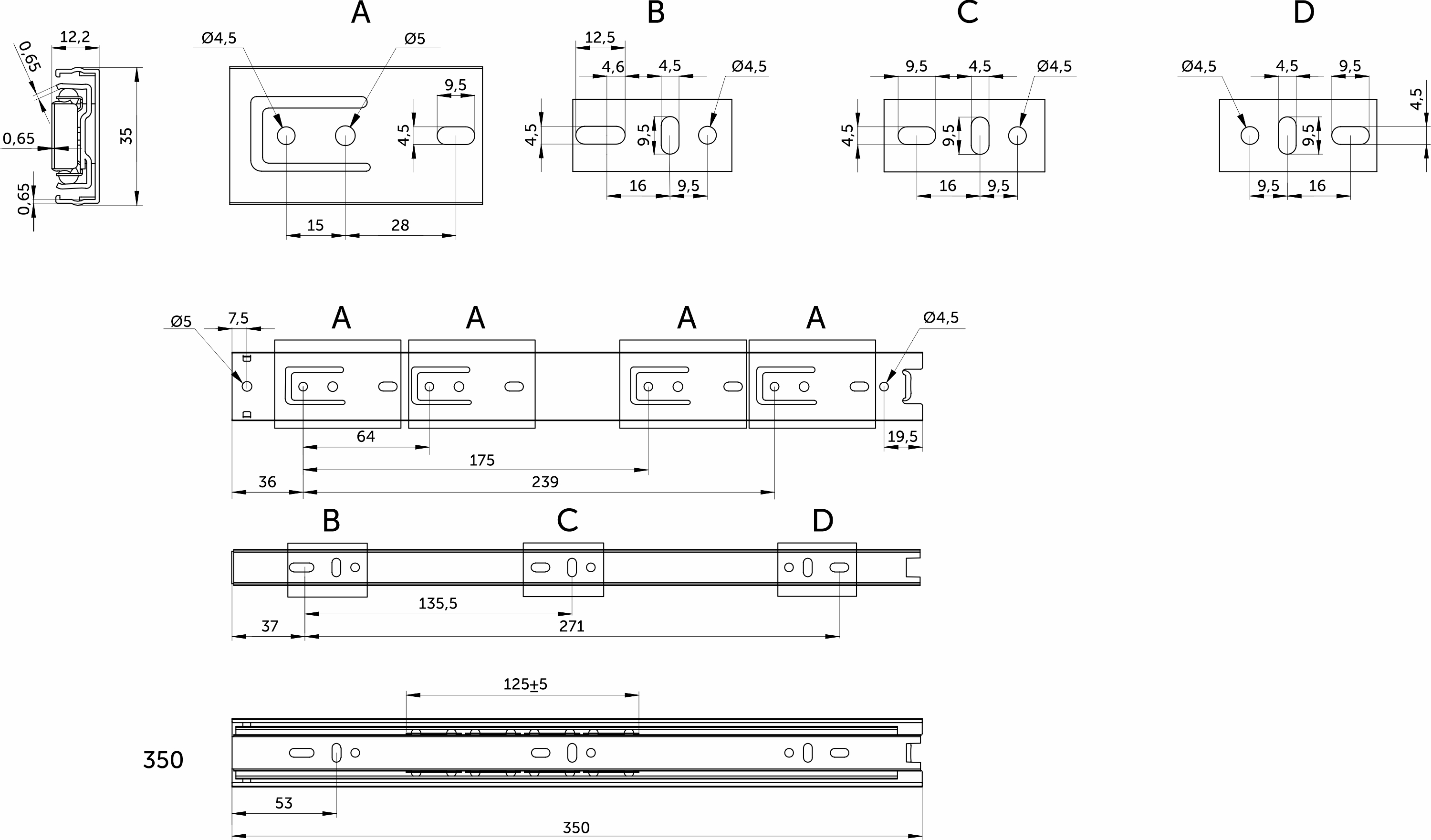 Направляющая для мебели GRIDLI изготовлена из холоднокатаной стали толщиной 0,65*0,65*0,65 мм, имеет резиновый фиксатор от самопроизвольного открытия. Фактическая высота данной направляющей 35 мм, а её длина – 350 мм.