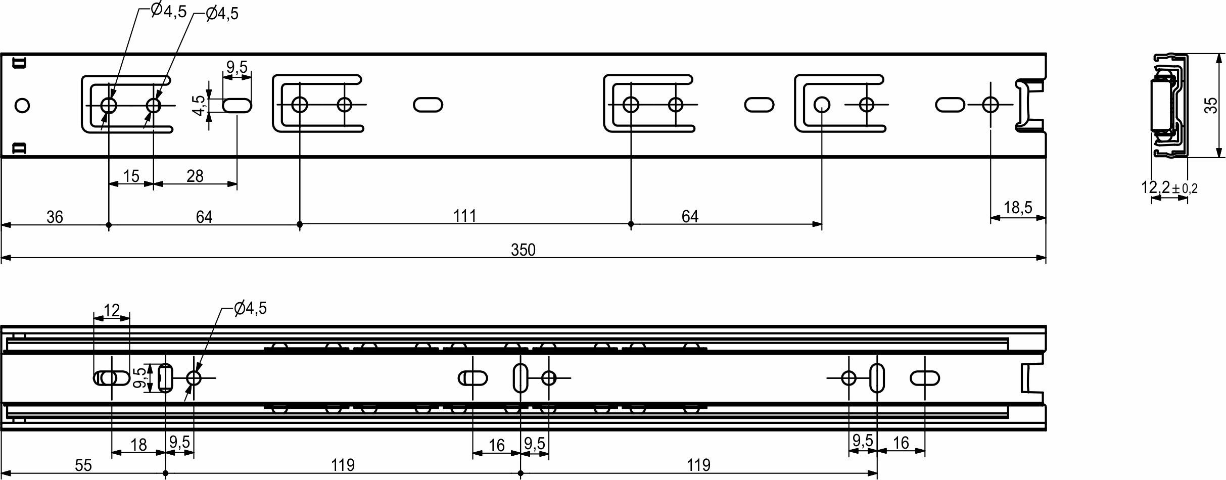 Направляющая шариковая L-350 h=35 GRIDLI B