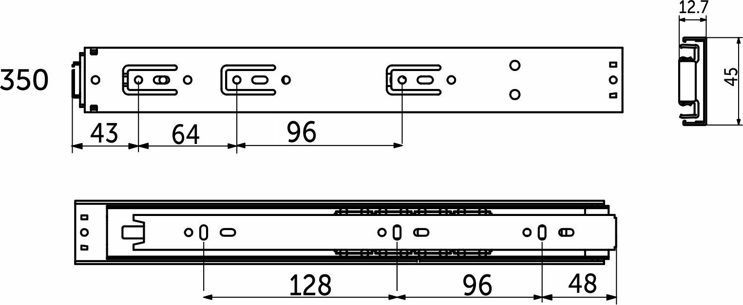 Направляющая шариковая L-350 h=45 REJS PUSH TO OPEN