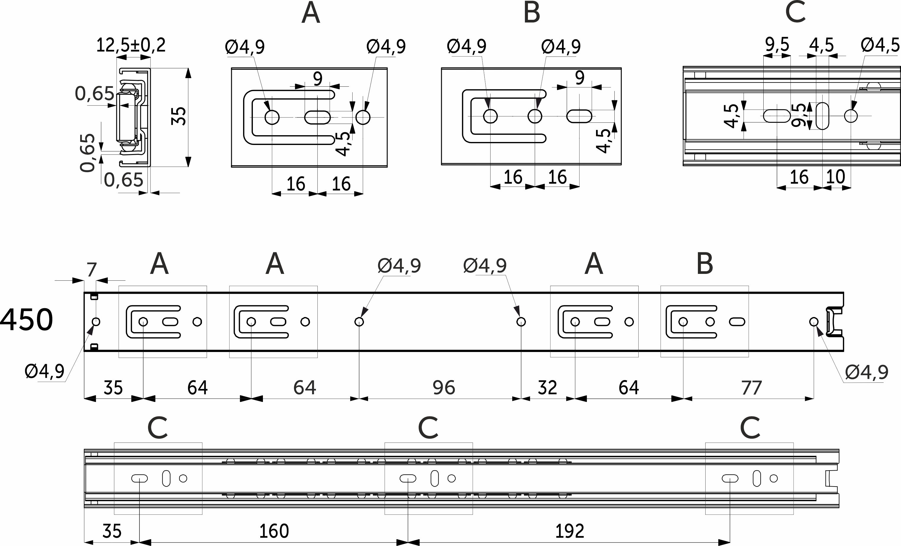 Направляющая шариковая L-450 h=35 GRIDLI A
