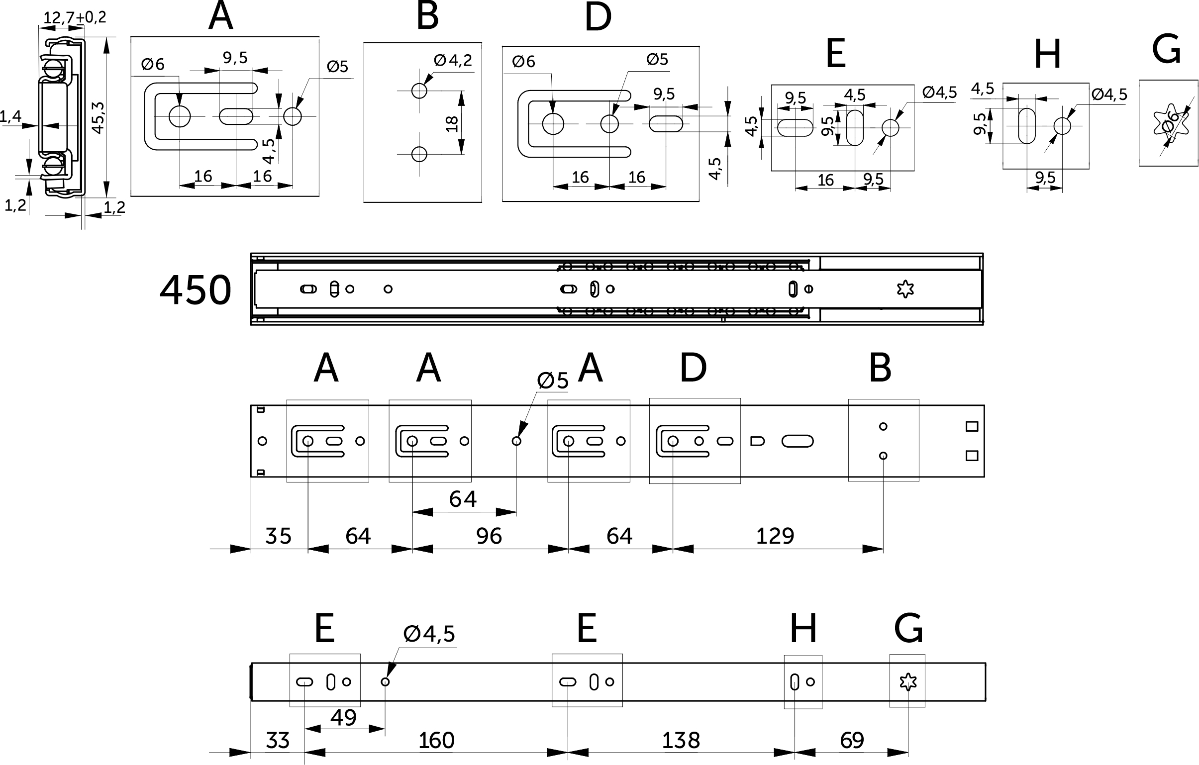 Направляющая шариковая L-450 h=45 PRIME by AKS SOFT CLOSE A черный