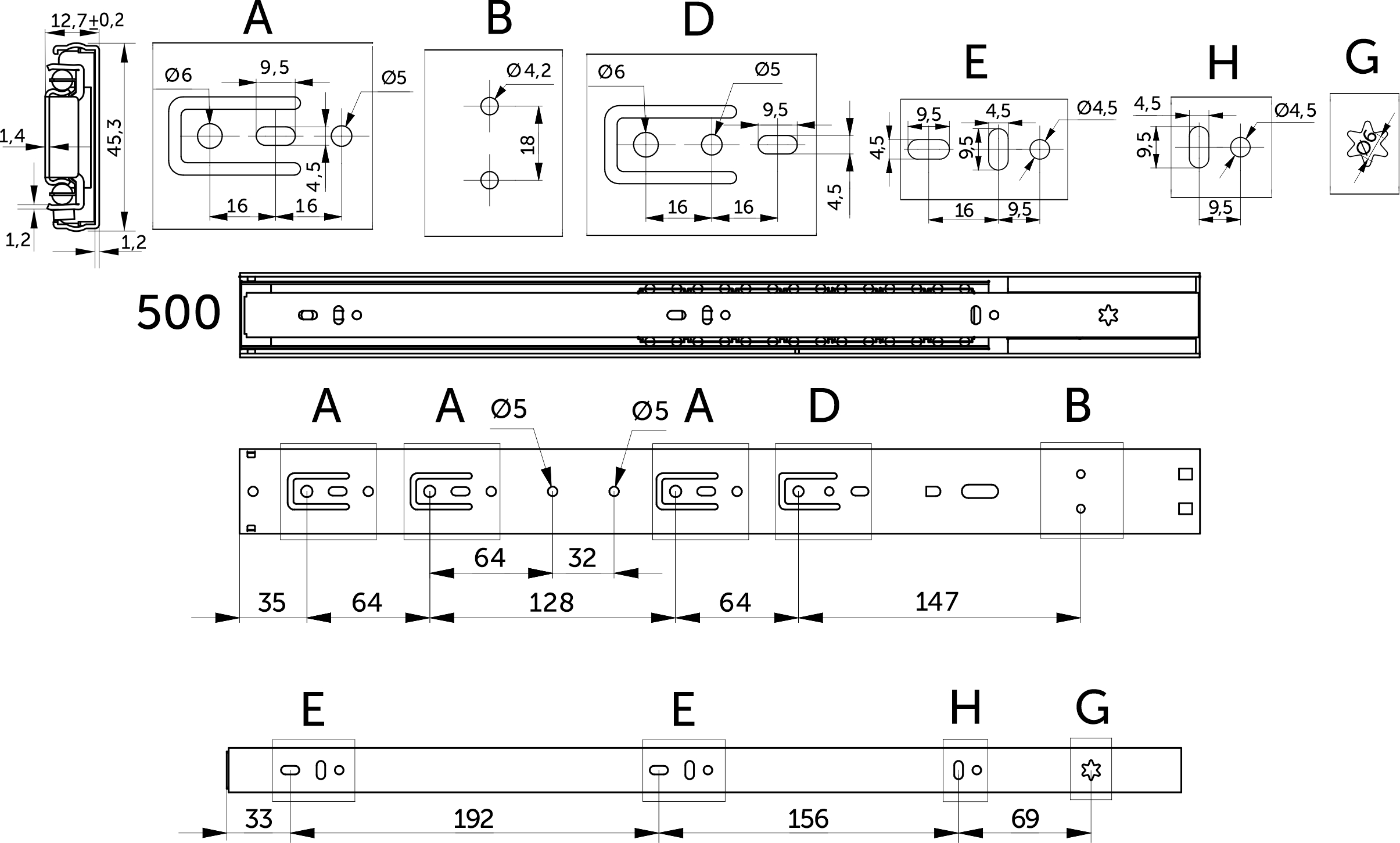 Направляющая шариковая L-500 h=45 PRIME by AKS SOFT CLOSE A черный