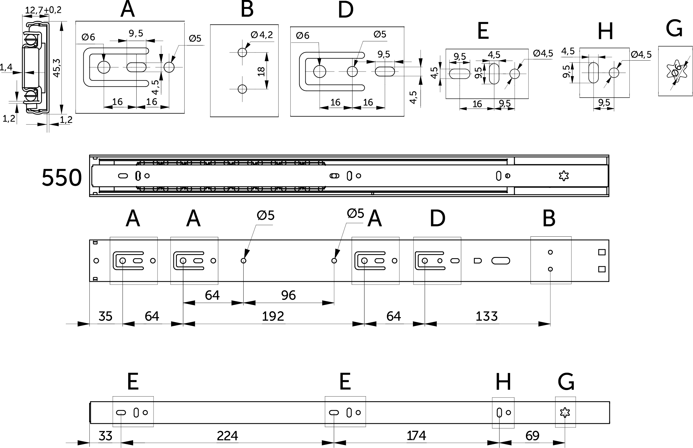 Направляющая шариковая L-550 h=45 PRIME by AKS SOFT CLOSE A черный