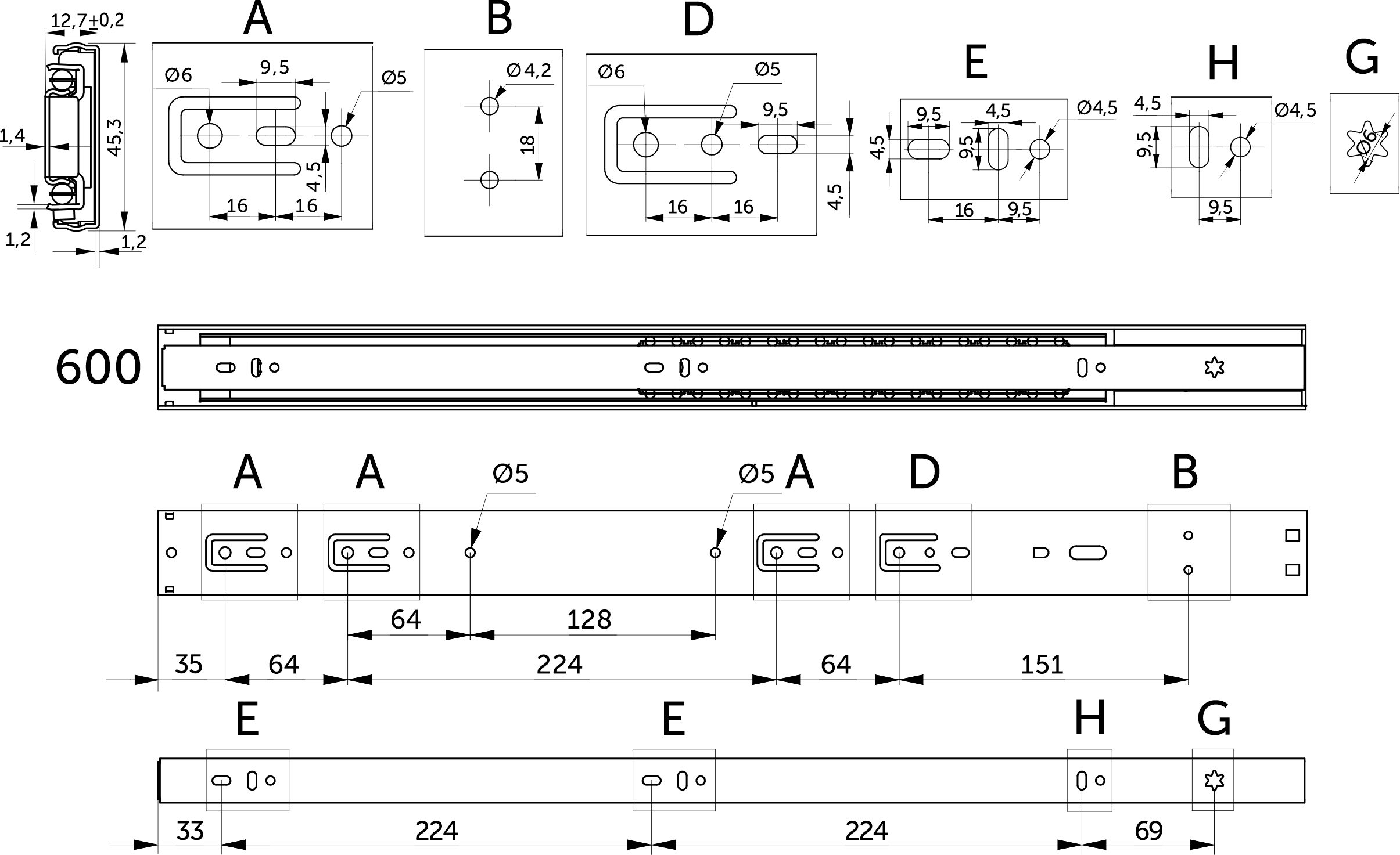 Направляющая шариковая L-600 h=45 PRIME by AKS SOFT CLOSE A черный