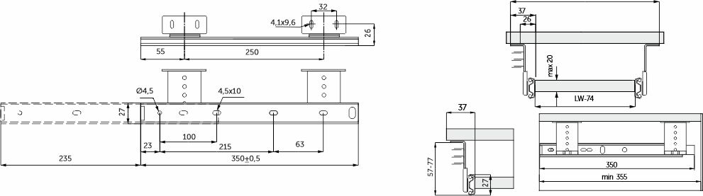 Направляющая шариковая L-350 h=27 AKS под клавиатуру