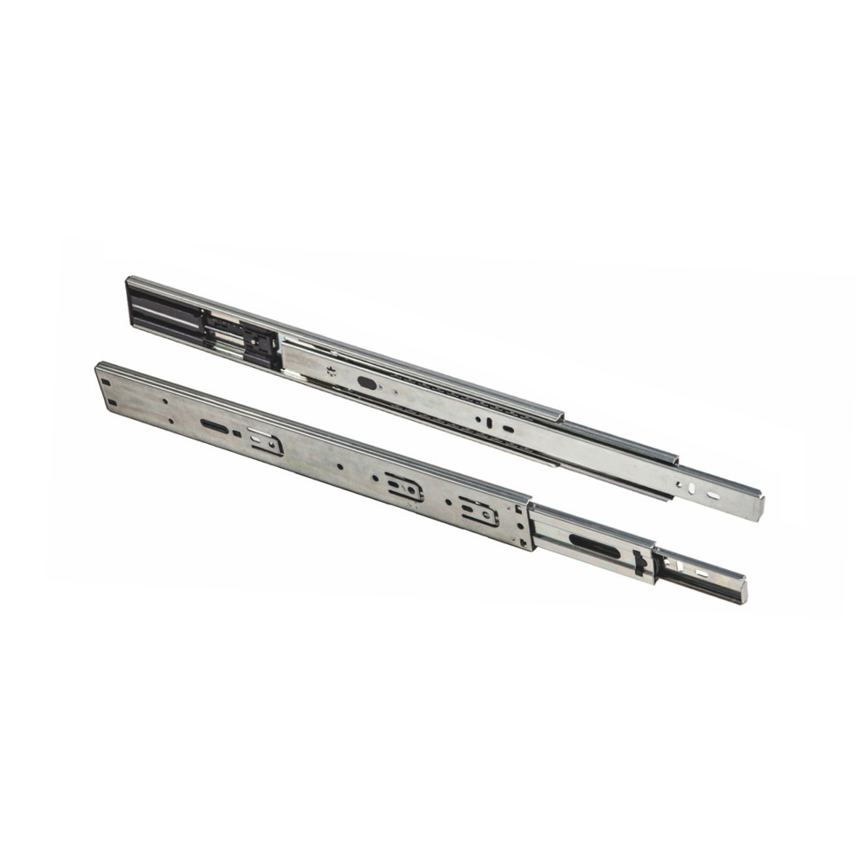 Направляющие для ящиков в 45-мм высоте оснащены доводчиком двупружинным. Имеет усиленные толщины 1,2 / 1,4 из холоднокатаной стали. Направляющие рассчитаны на постоянную нагрузку в 35 кг со сроком службы 80 000 циклов. Имеют шарикоподшипниковые механизмы и телескопическую структуру, что обеспечивает полное выдвижение ящика. Доступные длины от 250 до 600 мм. Функция сброса и бесшумного самодоката.