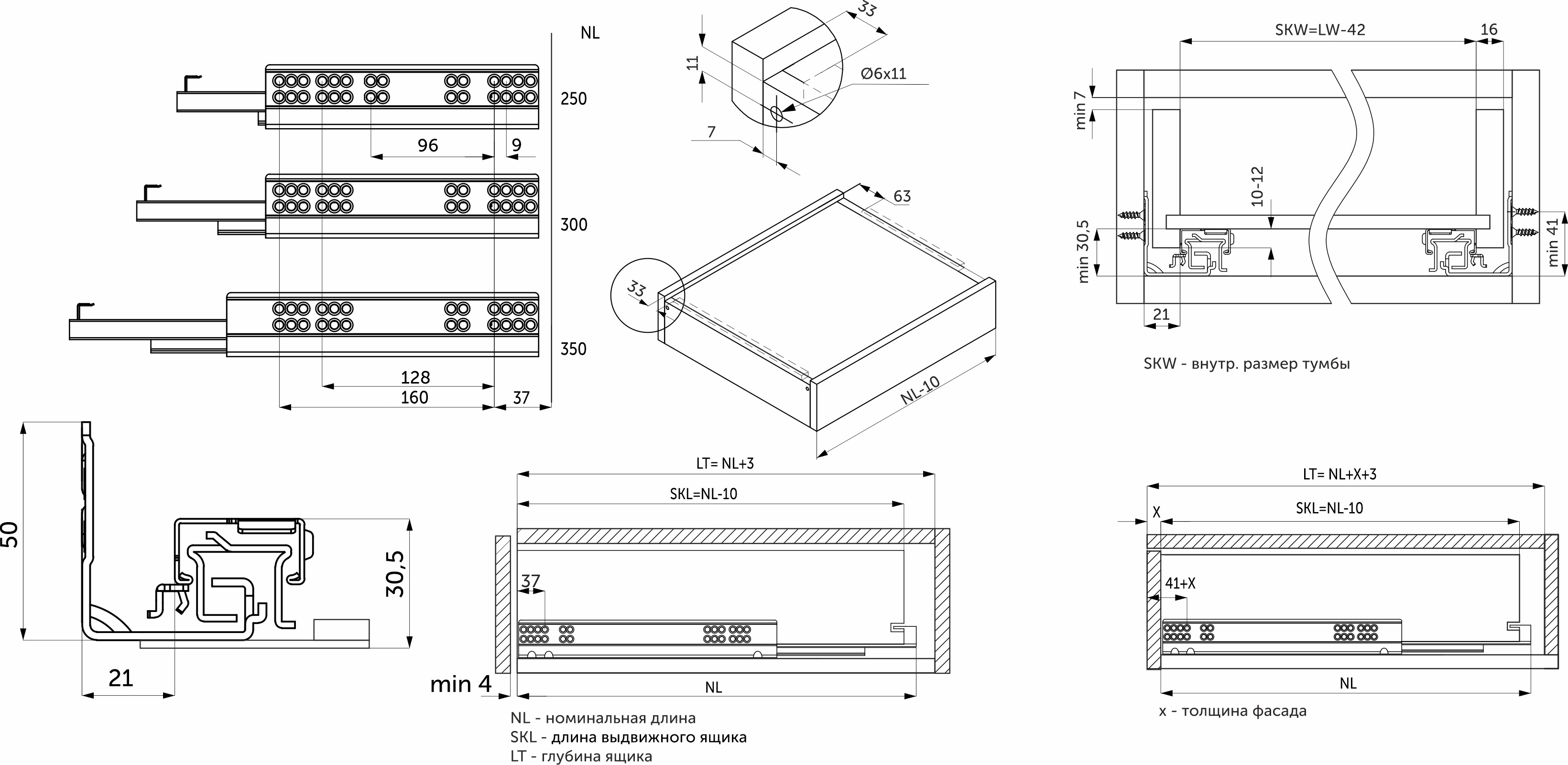 В комплект направляющих входит: направляющая - 2 шт (левая, правая), замок - 2 шт (левый, правый), механизм push-to-open – 2 шт, инструкция по установке - 1 шт.