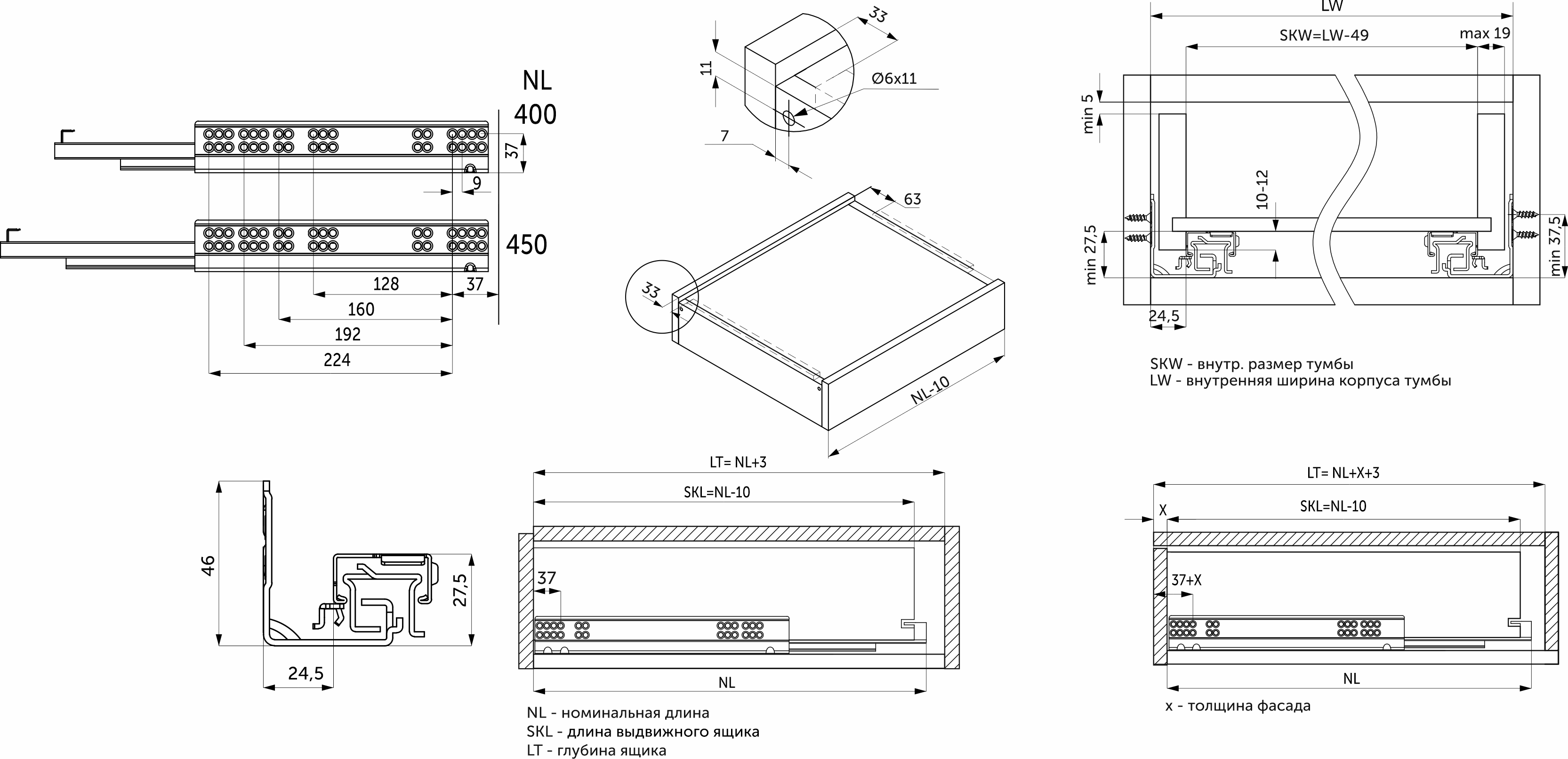 Подходят для мебели с боковыми стенками из плитного материала толщиной до 19 мм.