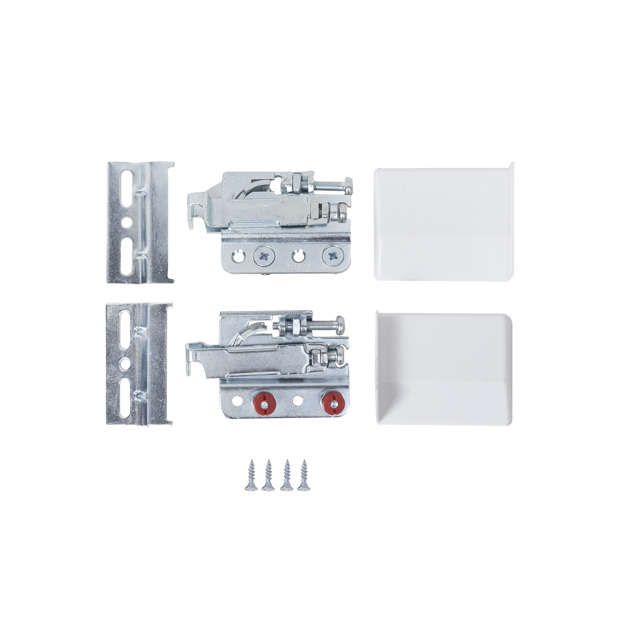 В комплект входят: 2 навеса, 2 монтажные планки, 2 заглушки белого цвета и комплект саморезов для крепления к корпусу ящика.